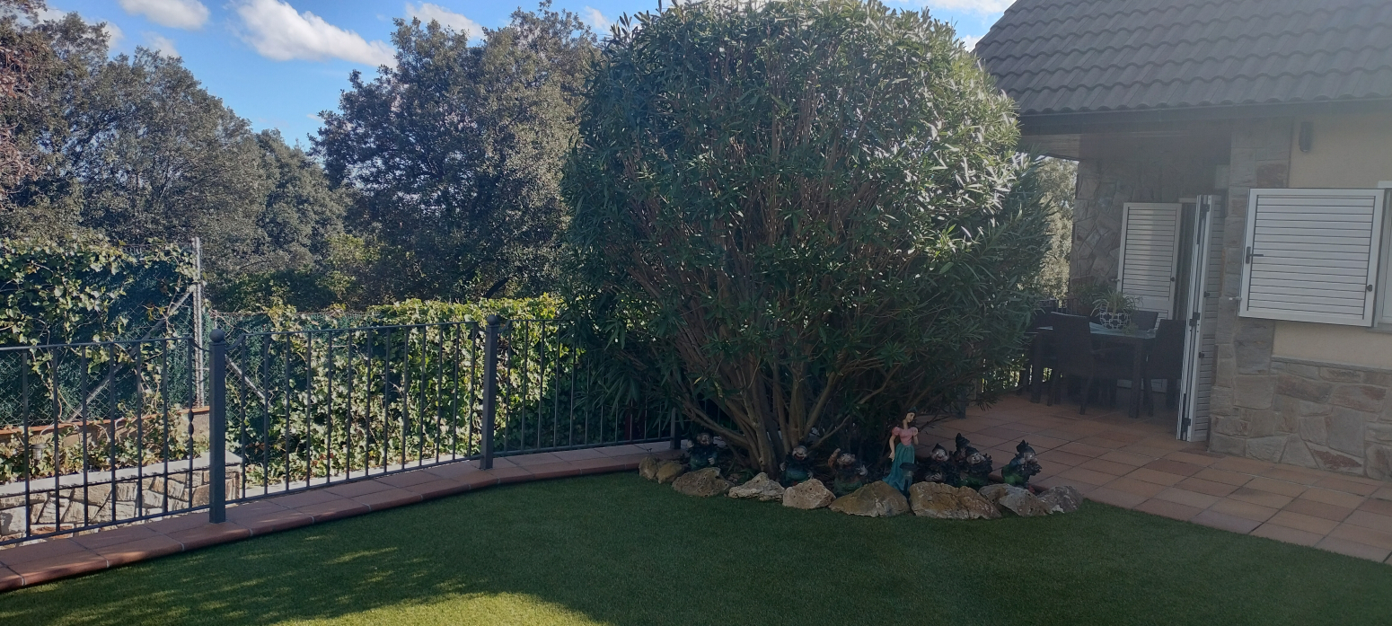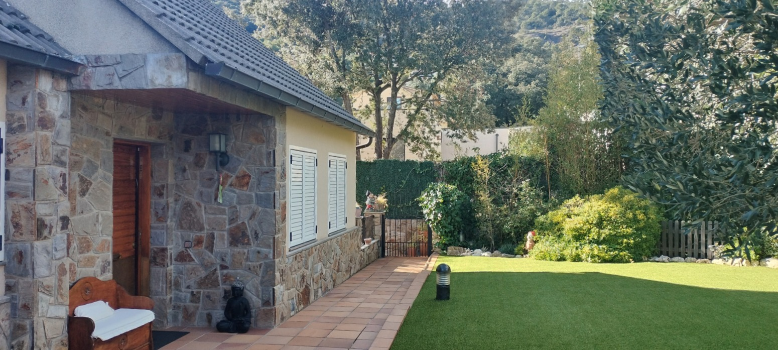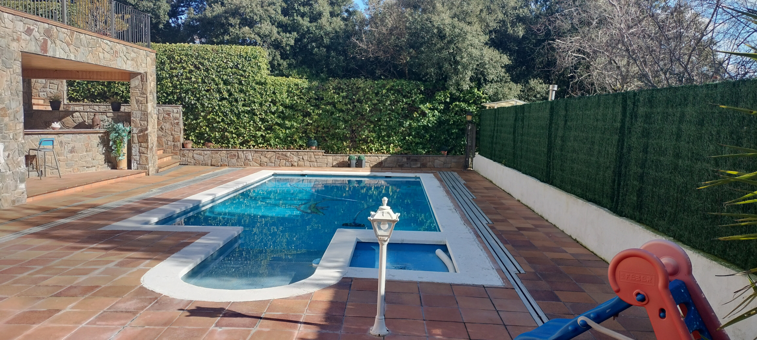 - Jardí: Un petit paradís amb vegetació exuberant i una àmplia zona de piscina, ideal per gaudir de la natura i la tranquil·litat en la teva pròpia propietat. A més, compta amb un porxo amb zona de barbacoa, perfecte per a reunions a l’aire lliure.