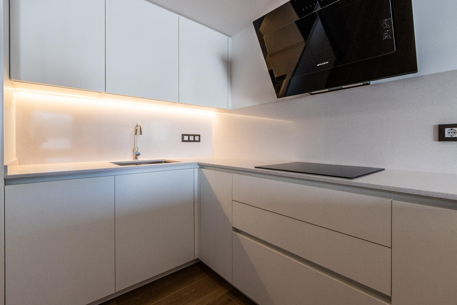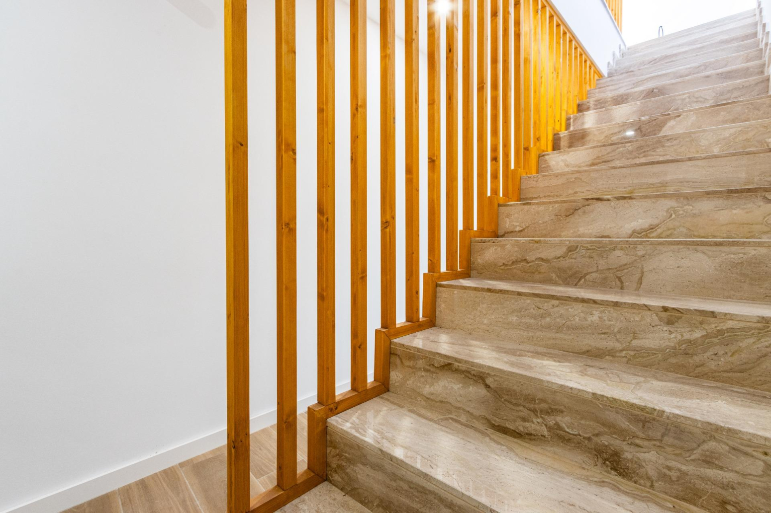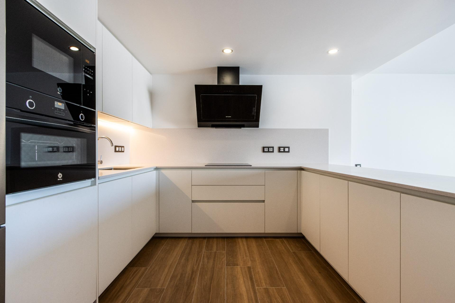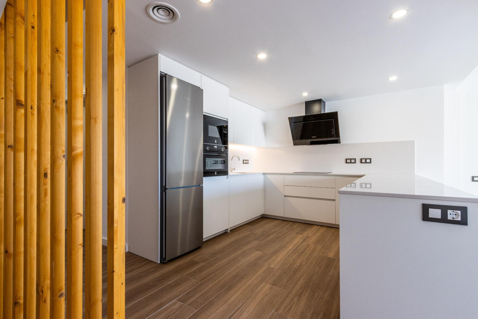 Des del rebedor, unes escales ens porten a la primera planta, on es troba l’impressionant saló-menjador. Aquest gran espai diàfan ofereix vistes espectaculars i compta amb sortida a una àmplia terrassa. A més, disposa d’una cuina espaiosa oberta de disseny modern i elegant, completament equipada amb electrodomèstics d’alta gamma.