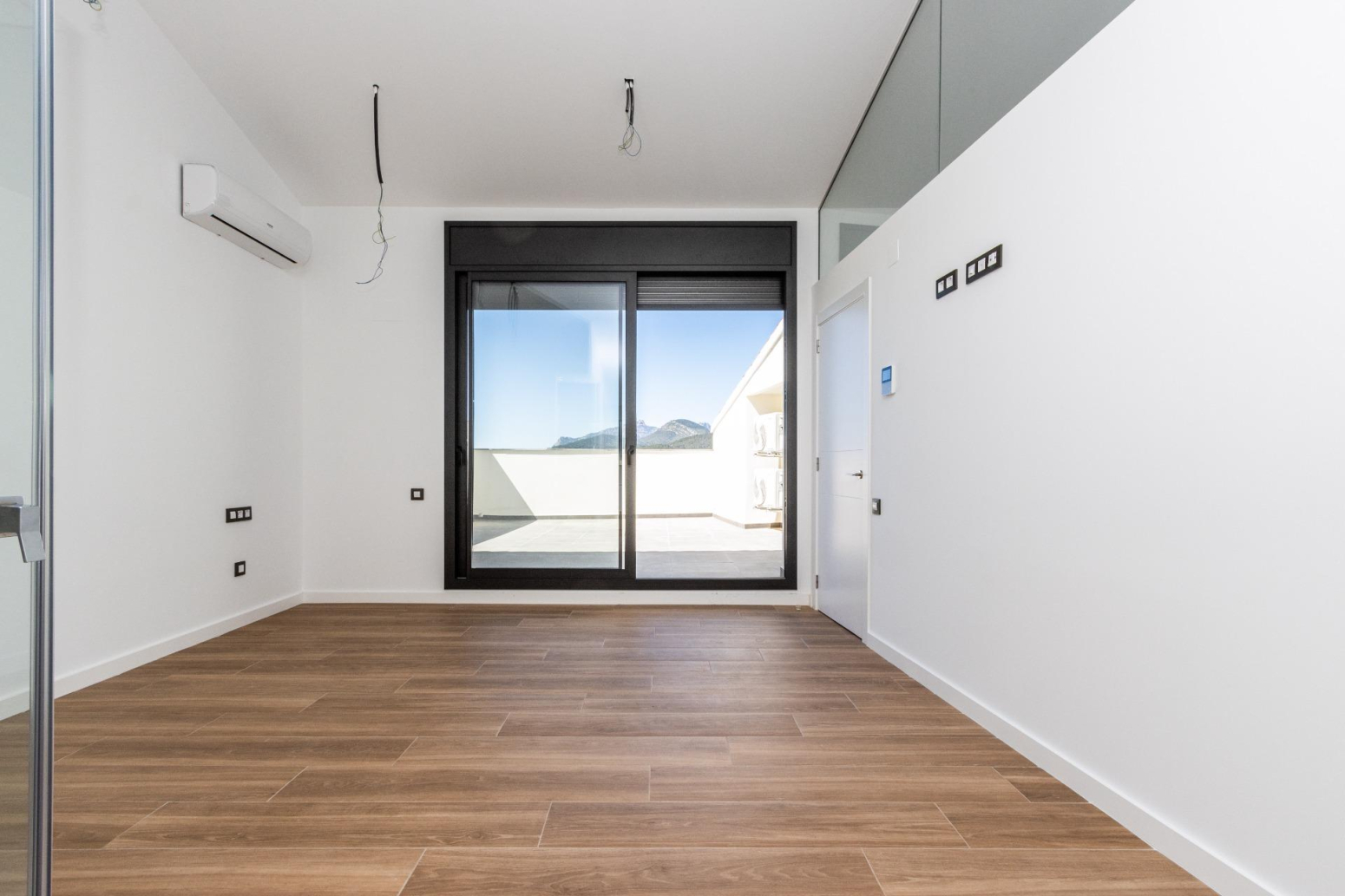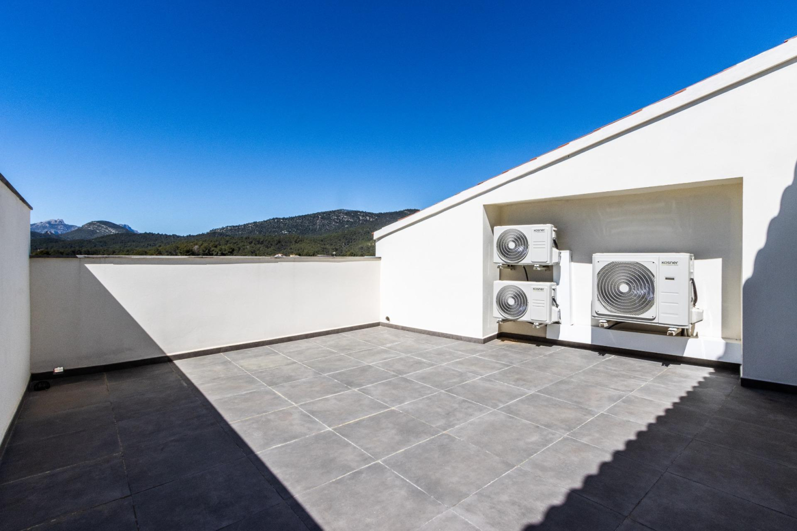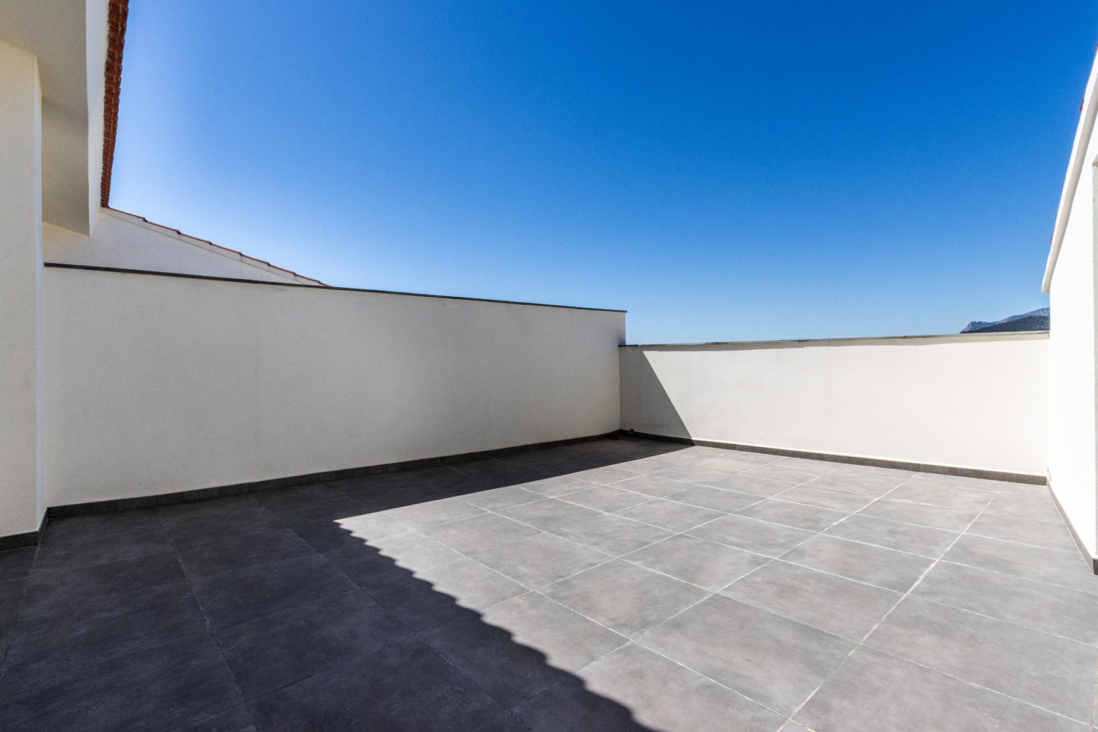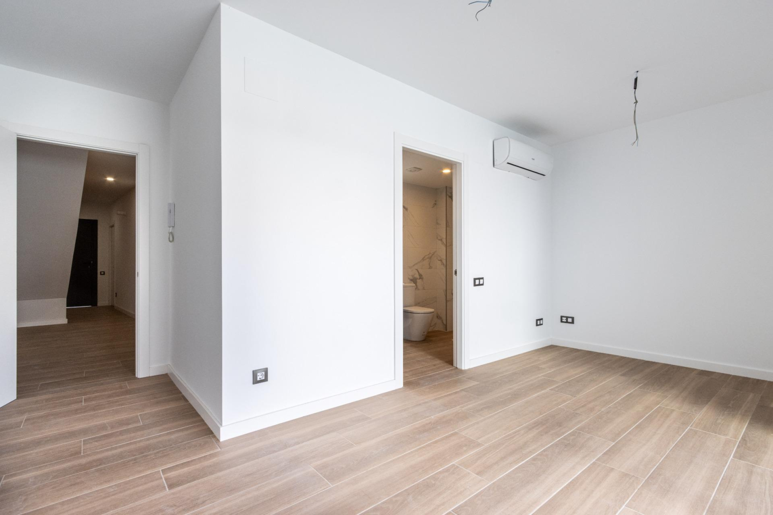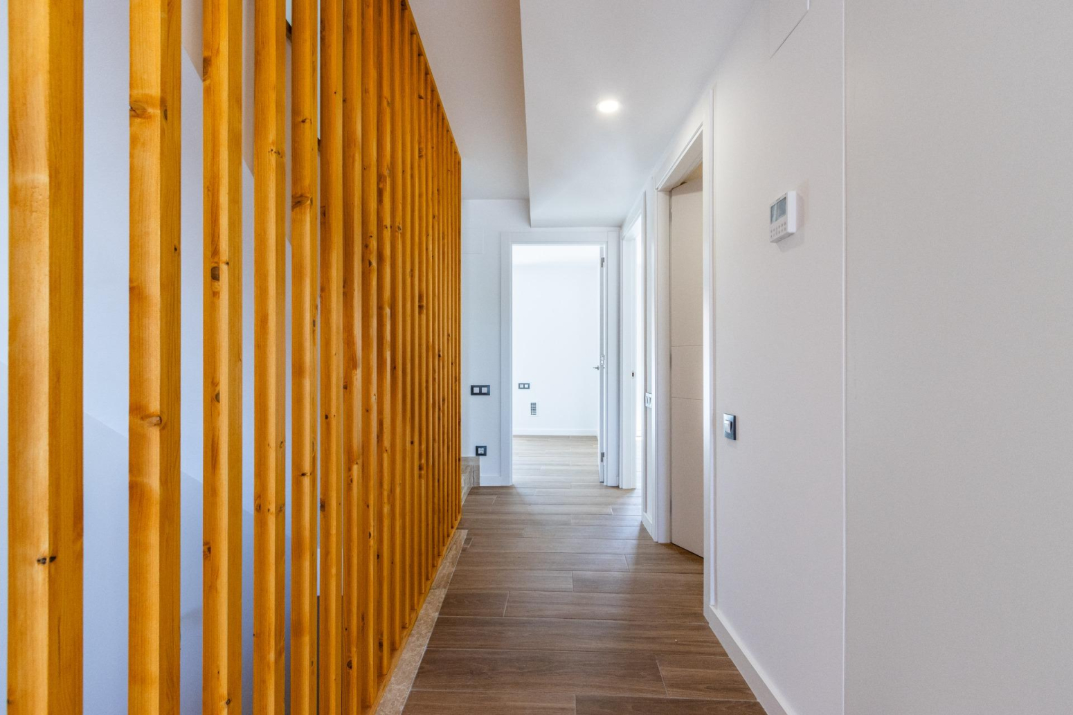 A la segona planta, un altre tram d’escales desemboca en una habitació amb bany en suite i vestidor, que també compta amb sortida a una gran terrassa amb vistes panoràmiques. Aquest espai destaca per la seva privacitat, lluminositat i amplitud, gràcies al gran finestral que dóna accés a la terrassa i l’altura del sostre a dues aigües, convertint-lo en una estança realment exclusiva.