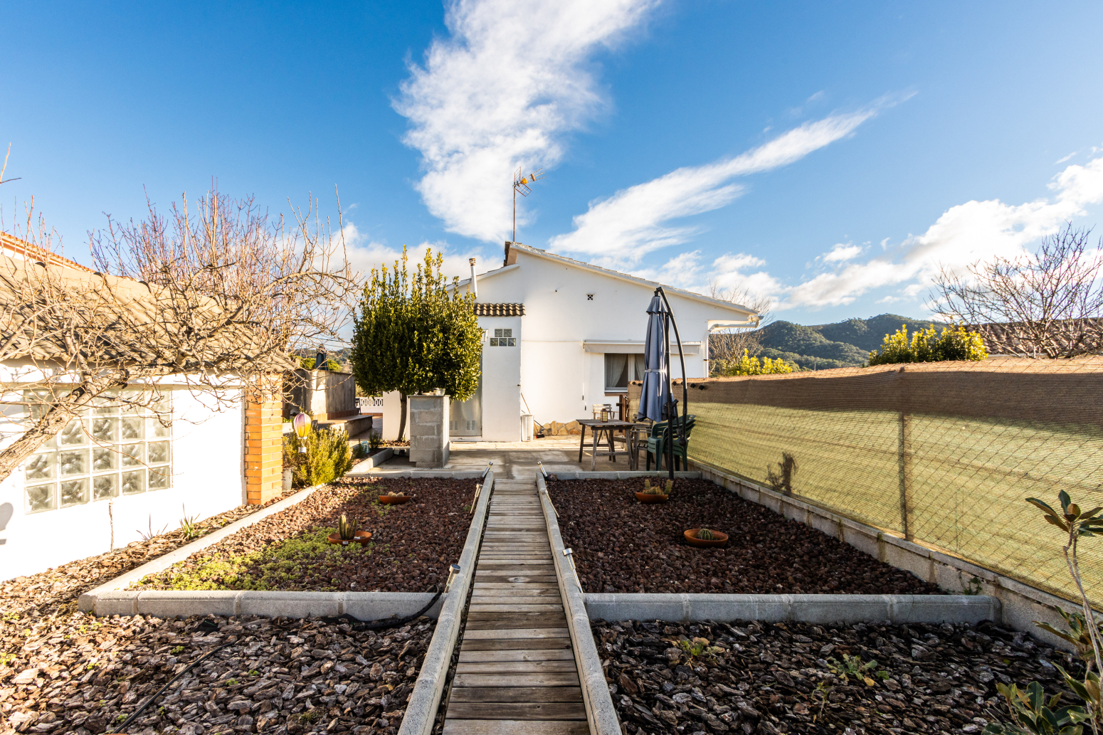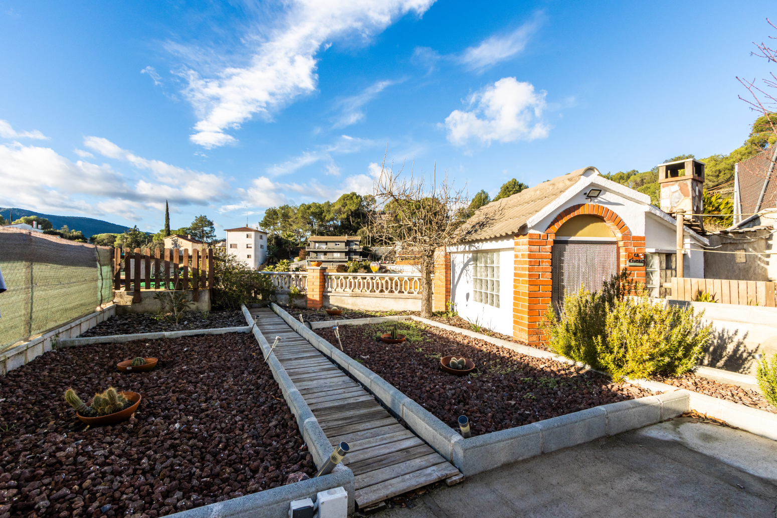 La vivenda s’assenta sobre una parcel·la de 488 m², perfectament aprofitada, on trobem un hort, una agradable zona de barbacoa ideal per a reunions familiars i amb amics, i una bassa d’aigua amb gran potencial per convertir-se en una piscina d’estiu, creant un autèntic oasi a l’aire lliure.
