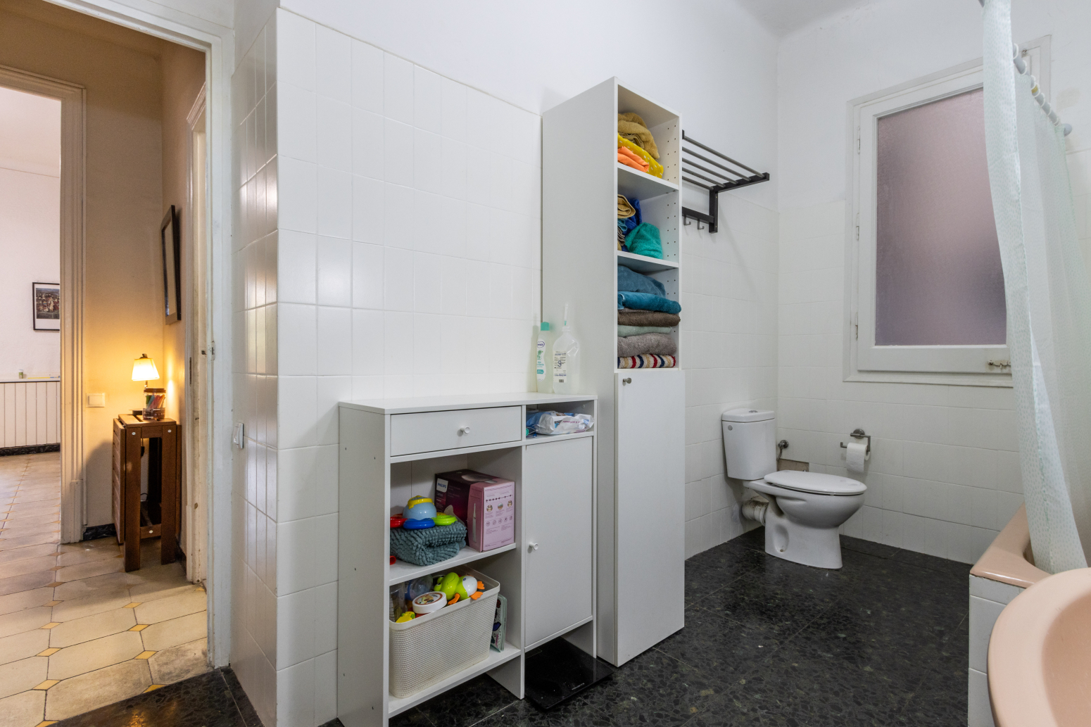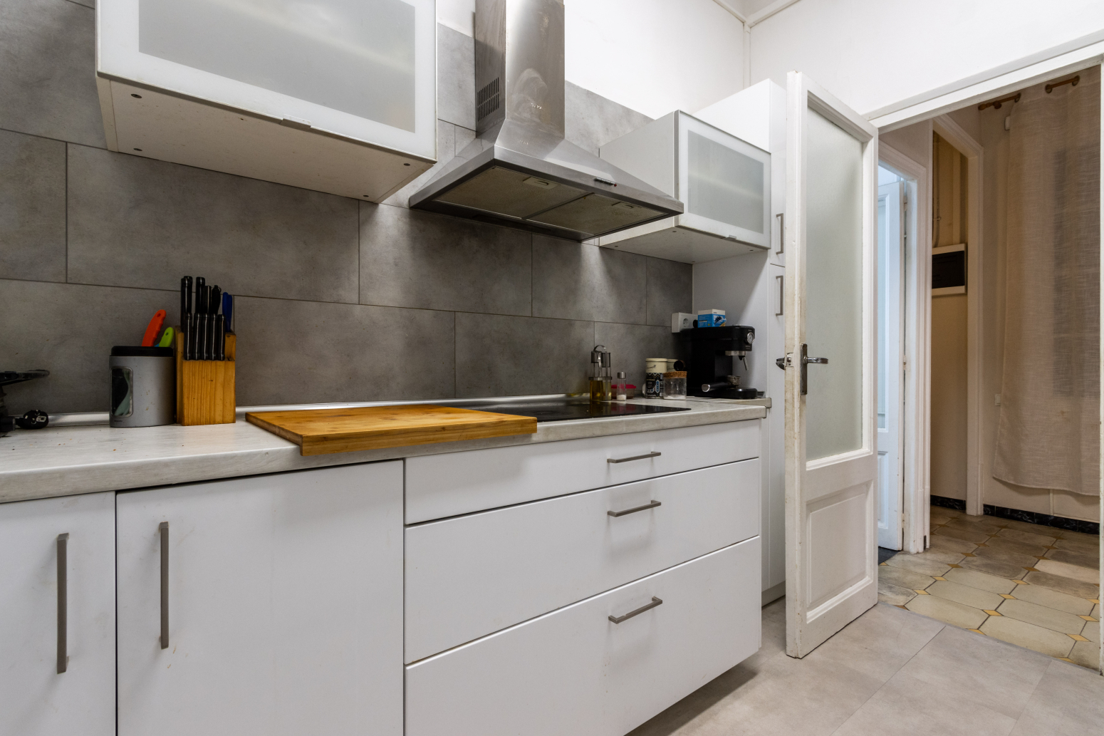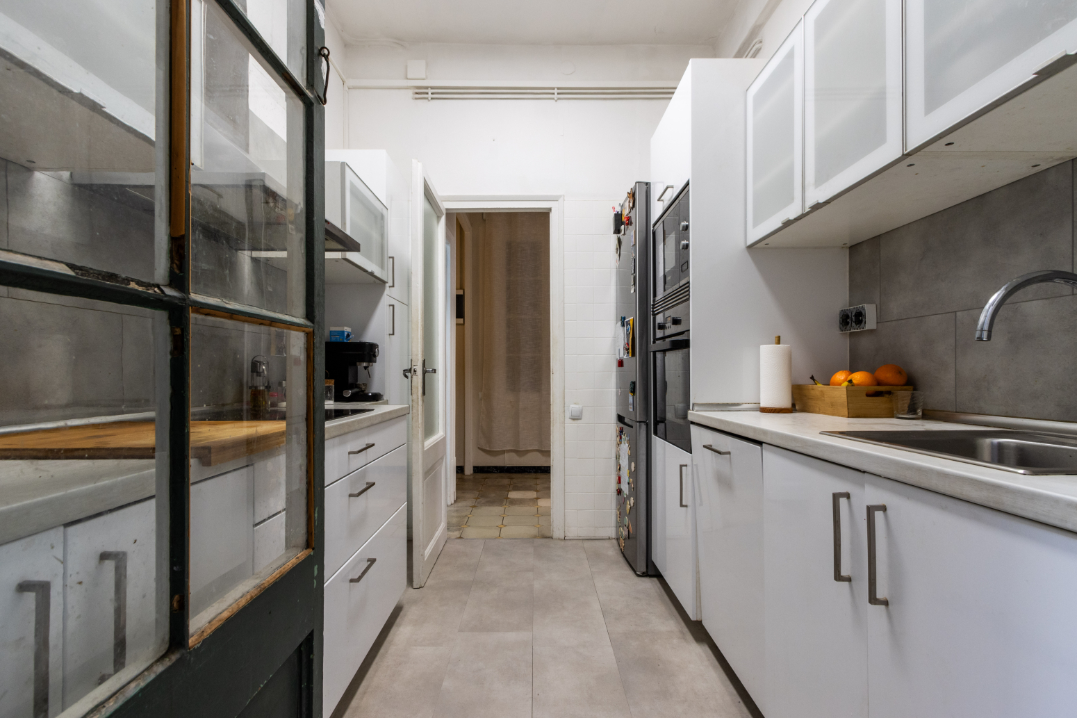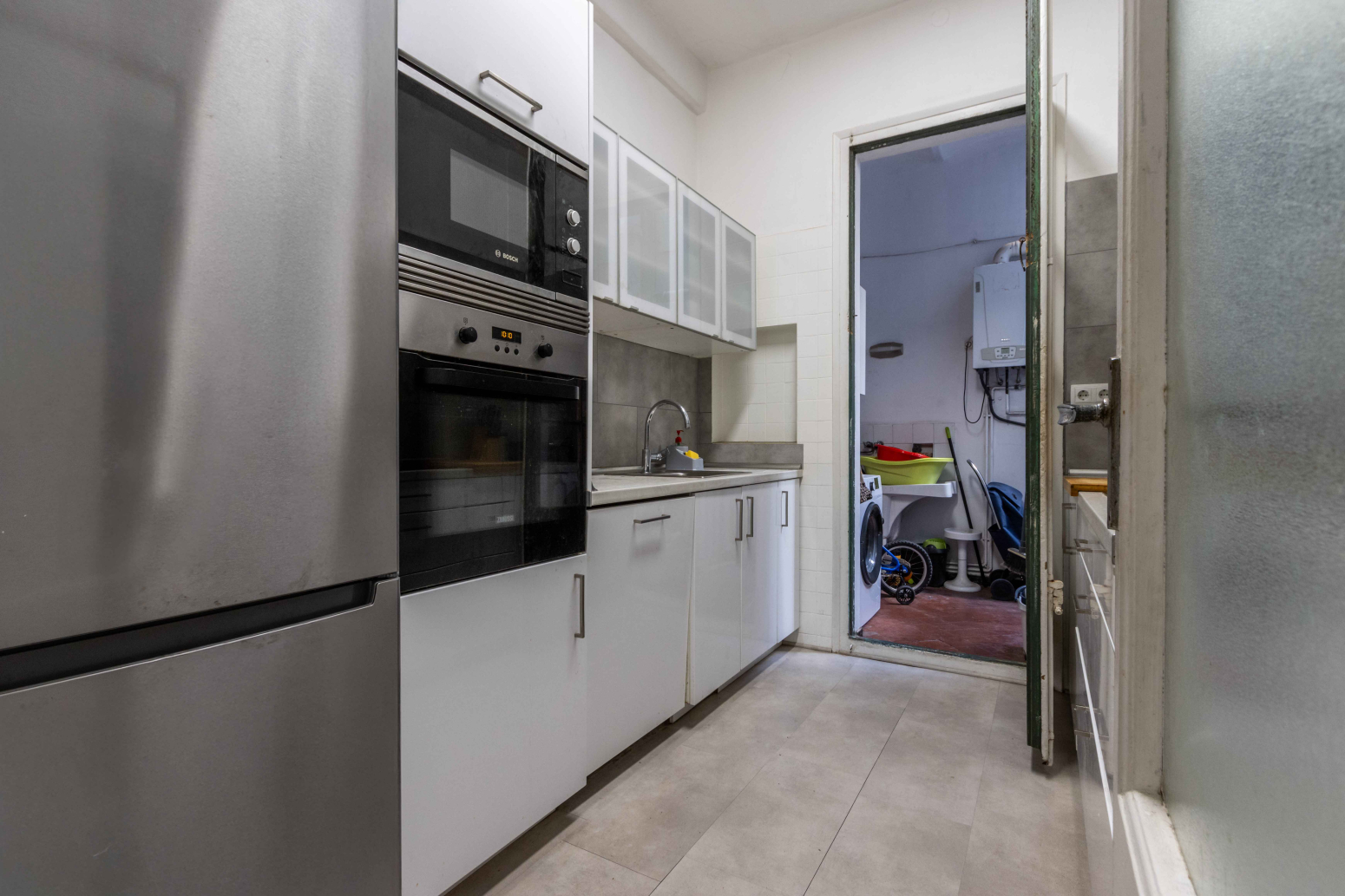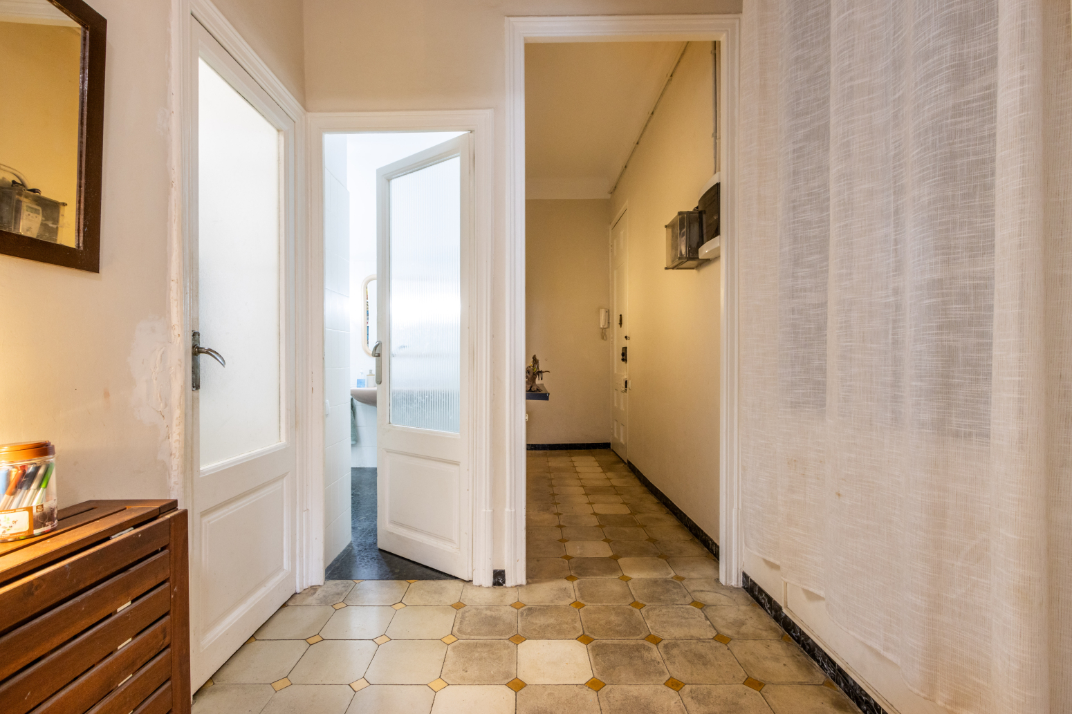 En accedir a l’immoble, un rebedor de 6 m² dóna la benvinguda i condueix a un bany complet de 7 m², ampli i confortable. A continuació, trobem una cuina independent de 6 m², funcional i ben aprofitada, amb sortida a un pati interior de 3,2 m², on s’ubica el rentador, aportant comoditat i ordre a la llar.