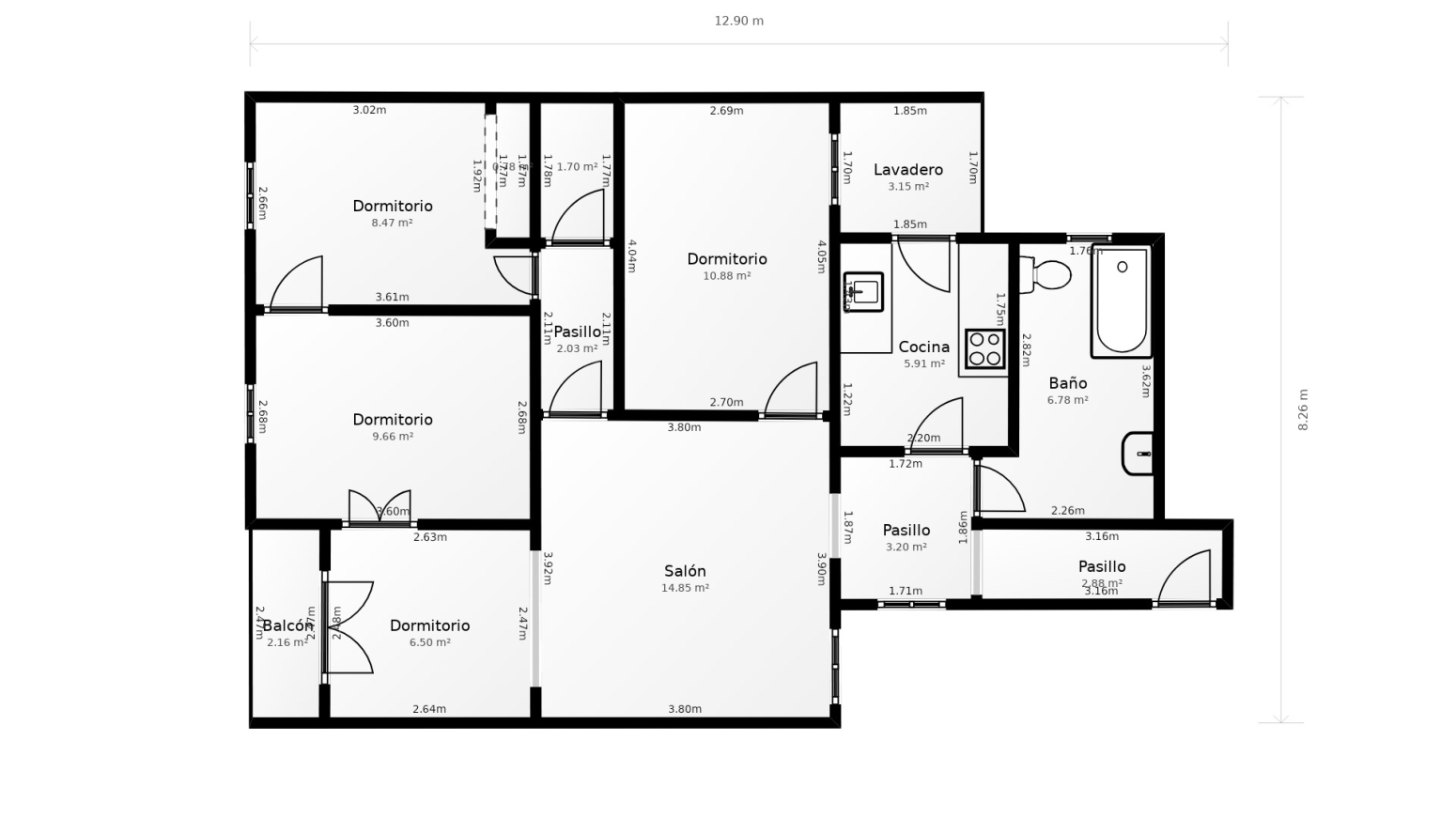 El saló-menjador de 21 m² és el veritable protagonista de l’habitatge: un espai ampli, lluminós i acollidor, amb accés directe a un balcó de 2,5 m², perfecte per gaudir de moments de tranquil·litat.
