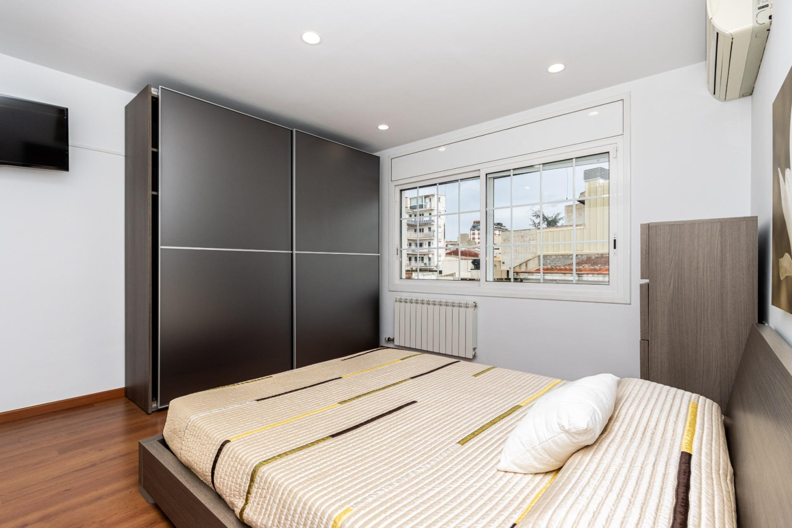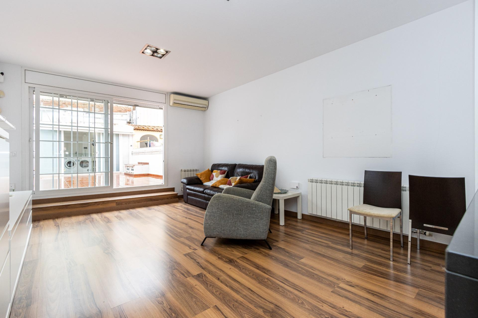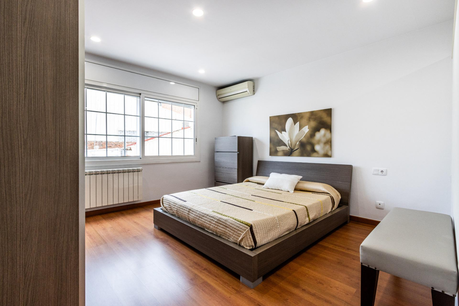 Surts a la terrassa i respires. Encara que estiguis al centre, aquí el temps va més lent. A la mateixa planta, una habitació doble lluminosa amb el seu propi balcó acull a qui arriba o a qui creix, i el bany complet ho fa tot més fàcil.