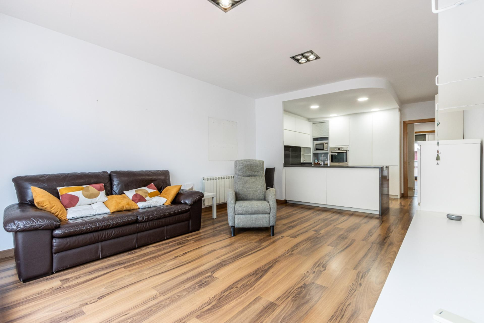 Imagina començar cada dia baixant al garatge privat, ampli i segur, amb capacitat per a dos cotxes. Sobres pel ascensor, perquè aquí la comoditat també ha estat pensada al detall, i entres al cor de la casa: un saló menjador on la llum entra a raig. Cada moble troba el seu lloc i la cuina oberta, moderna i equipada amb el millor, convida a: