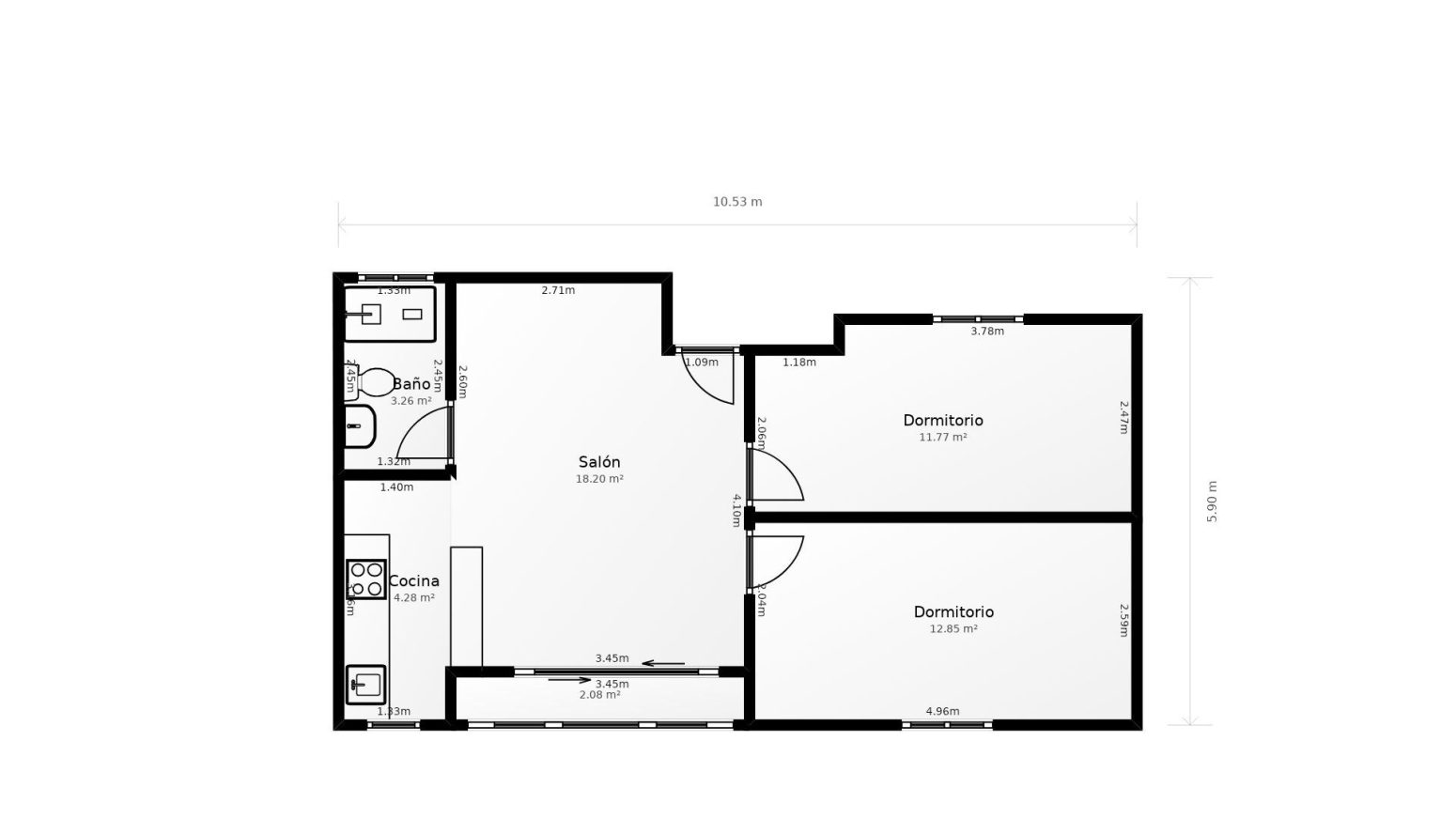 L’habitatge té una superfície de 60 m² i es distribueix de la següent manera: