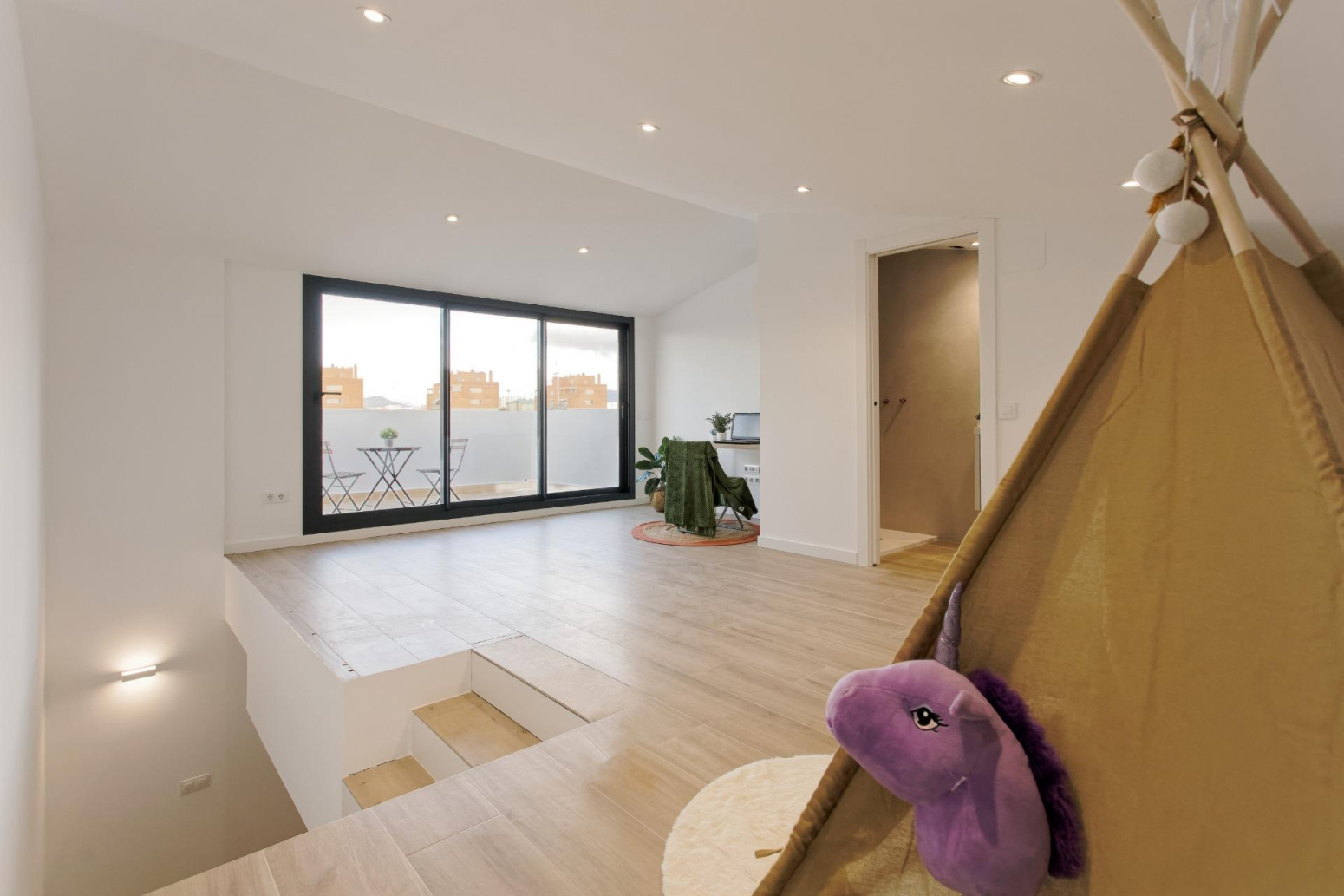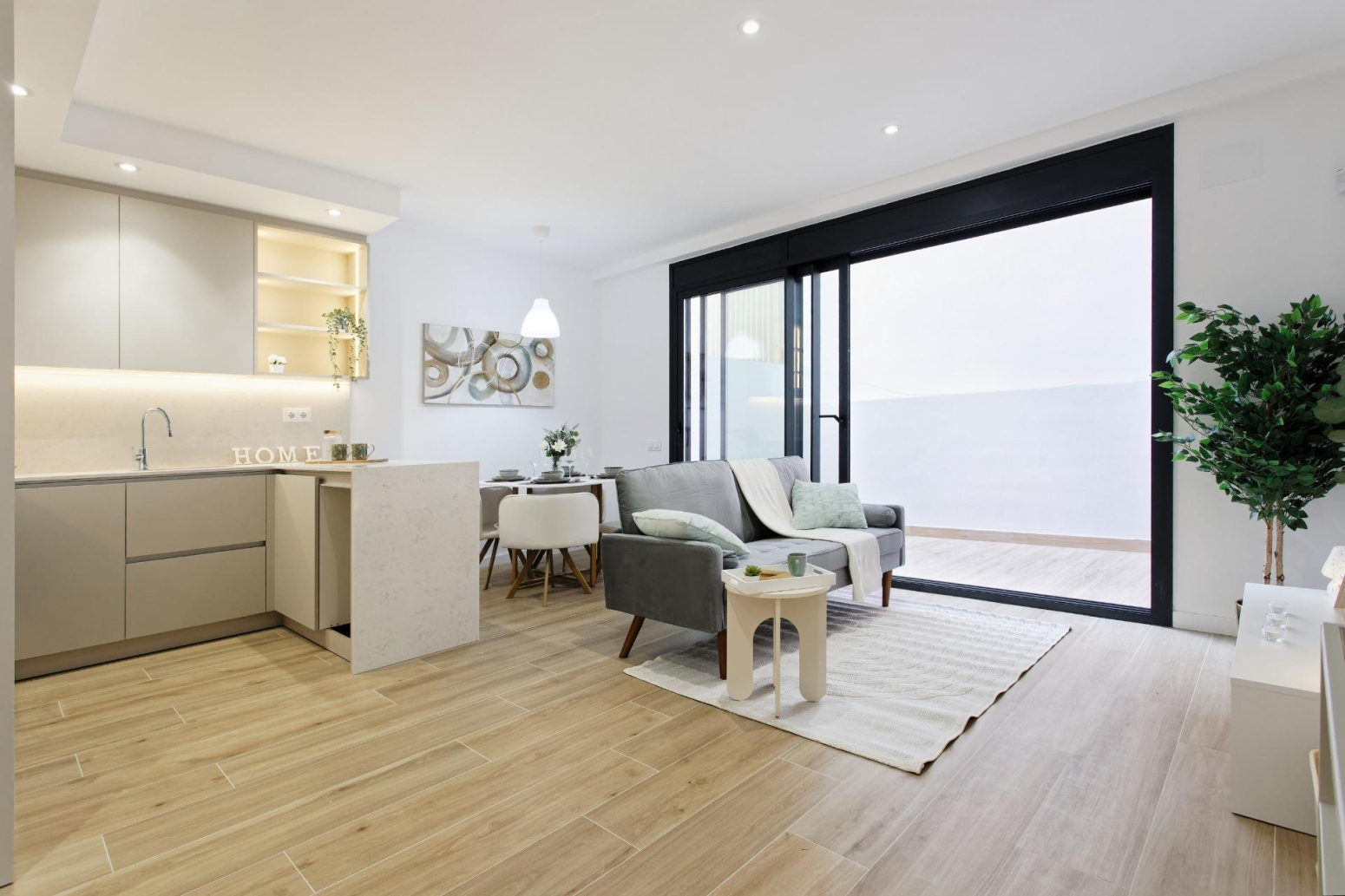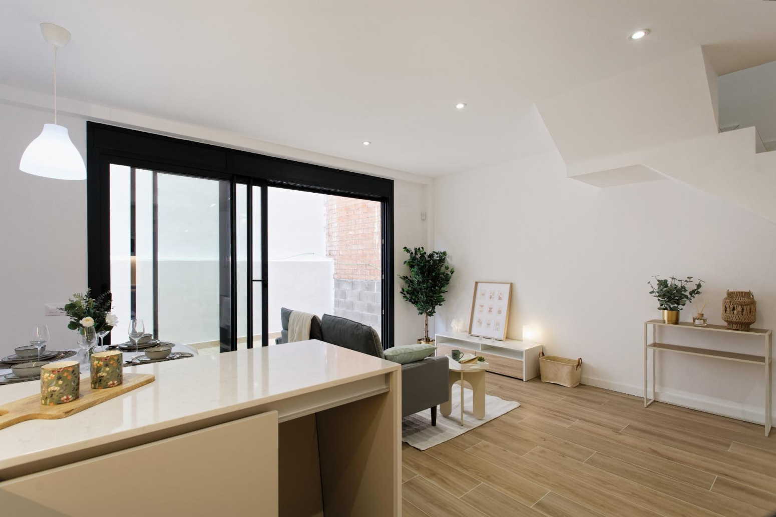 Patio a peu de la magnífica sala d’estar amb cuina oberta.