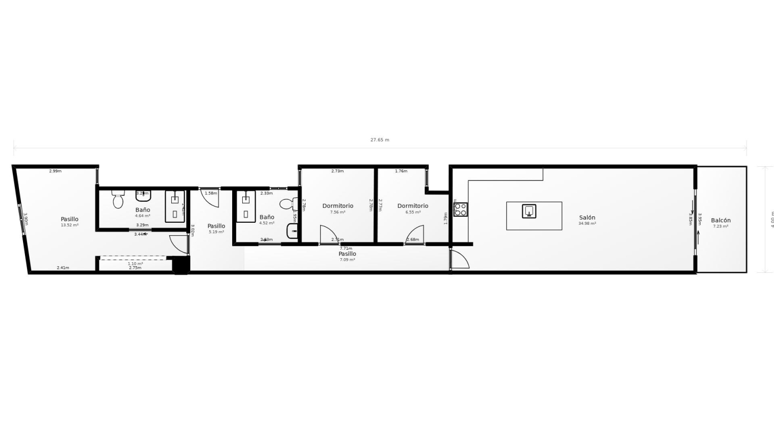 • Sala d’estar-menjador: 35 m² amb cuina oberta i sortida a la terrassa