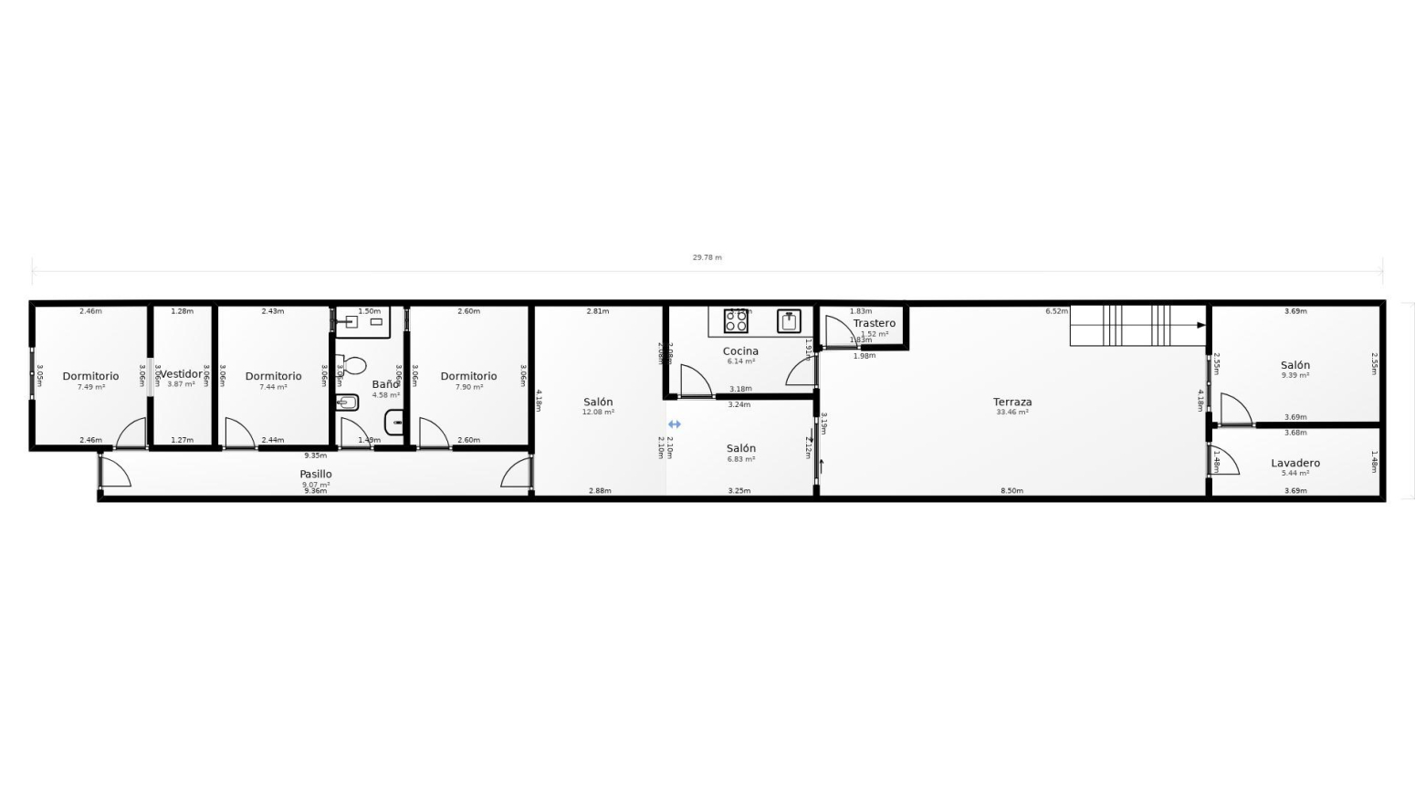 El pati, de 35 m², és ampli i agradable, ideal per gaudir de l’aire lliure. Des d’ell s’accedeix tant a la quarta habitació com a la zona de rentadora, que ofereix la possibilitat d’habilitar un segon bany.