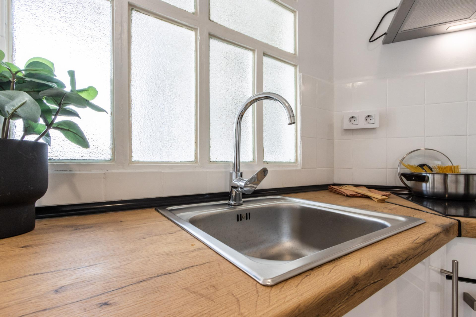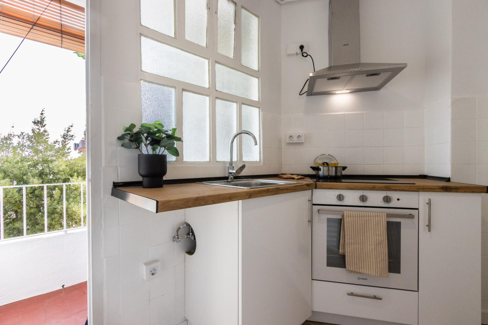 Cuina funcional que connecta amb un rentador exterior lluminós