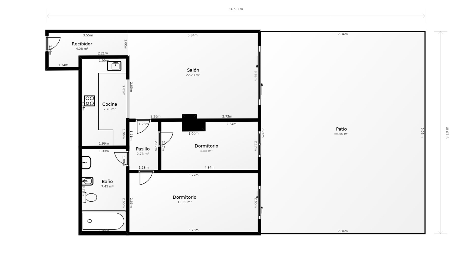 El cor d’aquest pis s’obre a un impressionant pati privat de 60 m², un espai ampli i versàtil que es converteix en el lloc perfecte per crear moments inoblidables. Ja sigui gaudint de menjars a l’aire lliure, organitzant reunions amb amics o simplement relaxant-te en un entorn de pau en plena ciutat.