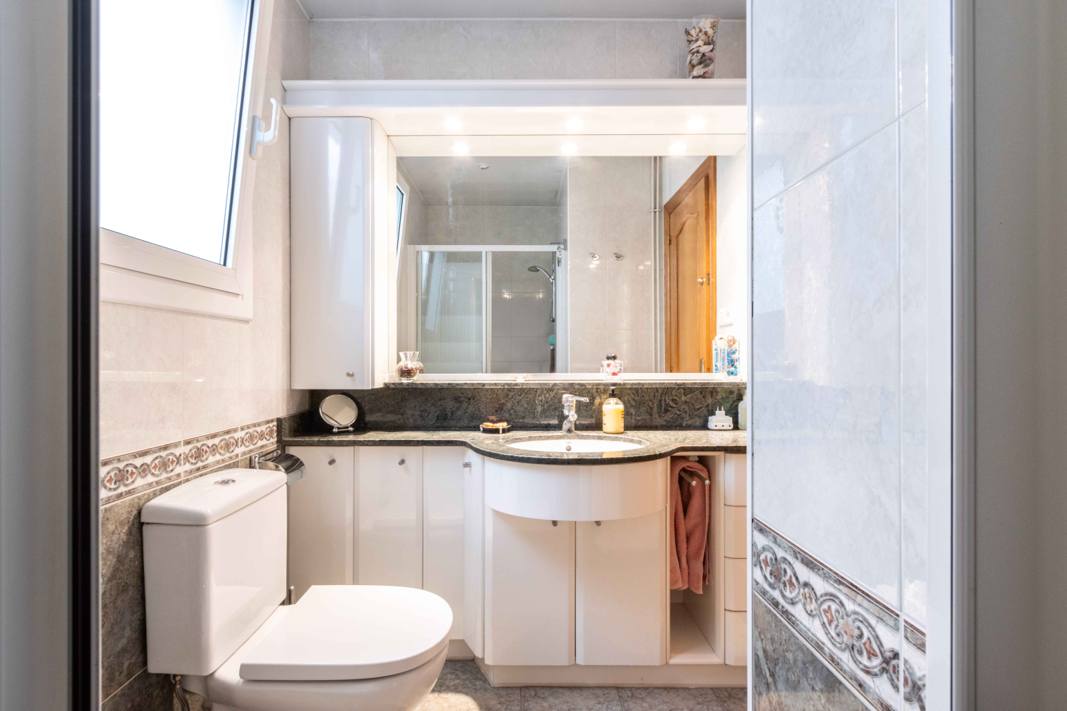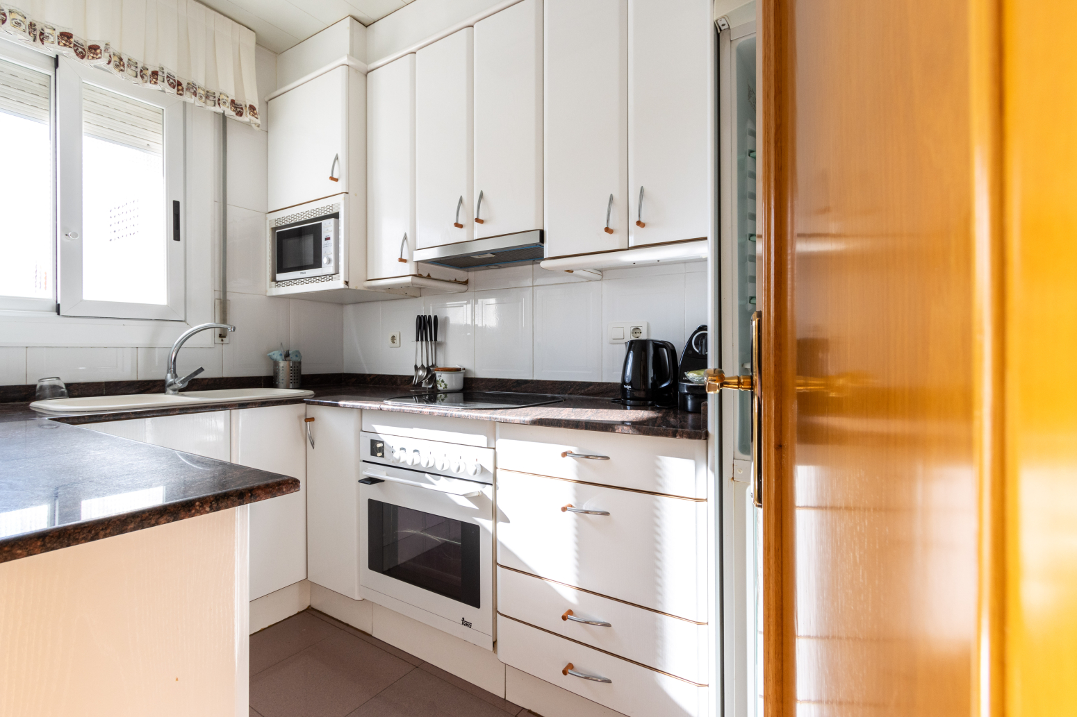 • Cuina amb taulell de granit i molt espai d’emmagatzematge.