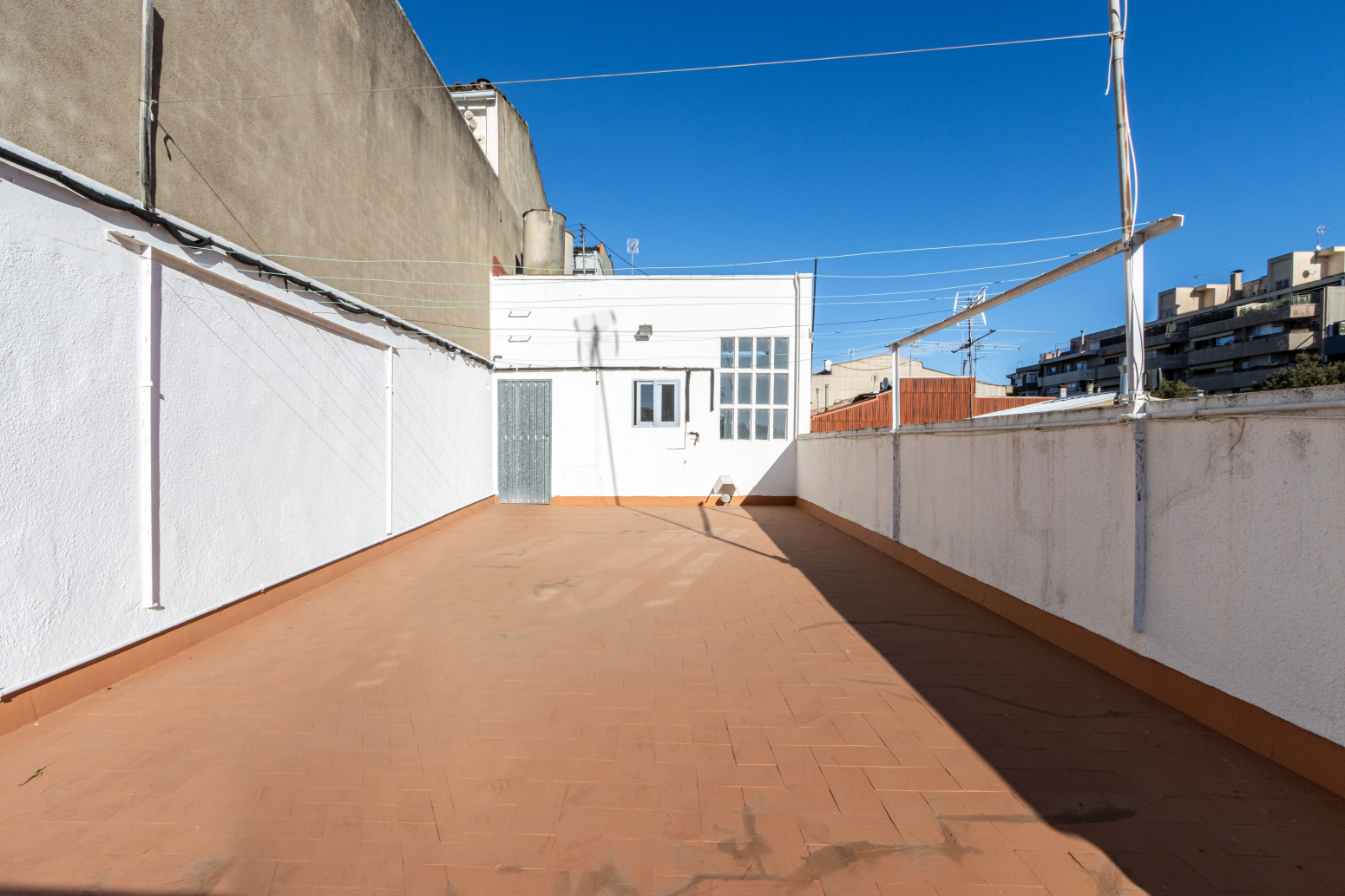 • Gran terrassa superior, àmplia, assolellada i amb vistes despejades a la xemeneia del Vapor Bobila, símbol de Terrassa.