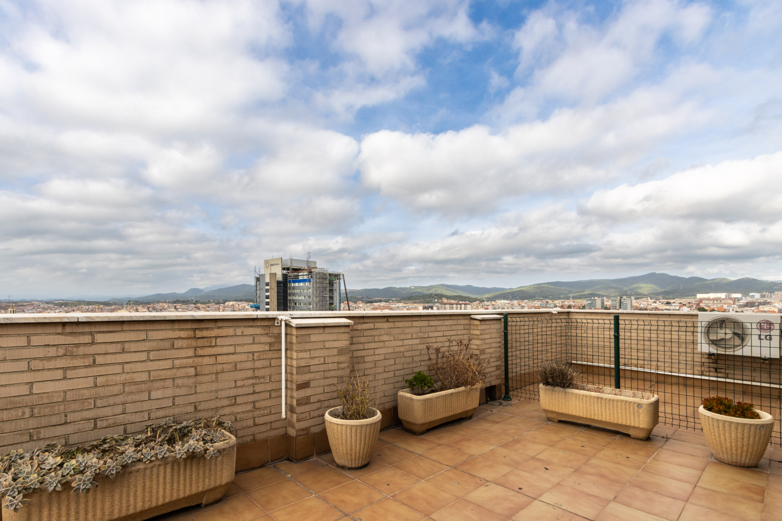 En la part superior, trobem un estudi amb accés a una altra gran terrassa, ideal com a sala de jocs o sala de lectura. També hi ha una habitació doble amb sortida a la mateixa terrassa, que ofereix vistes al Parc de Vallparadís, Castell de Cartoxa o La Mola, en ple cor de la ciutat. La propietat inclou una habitació individual exterior, un bany complet i una zona de rentadora amb accés a un balcó.