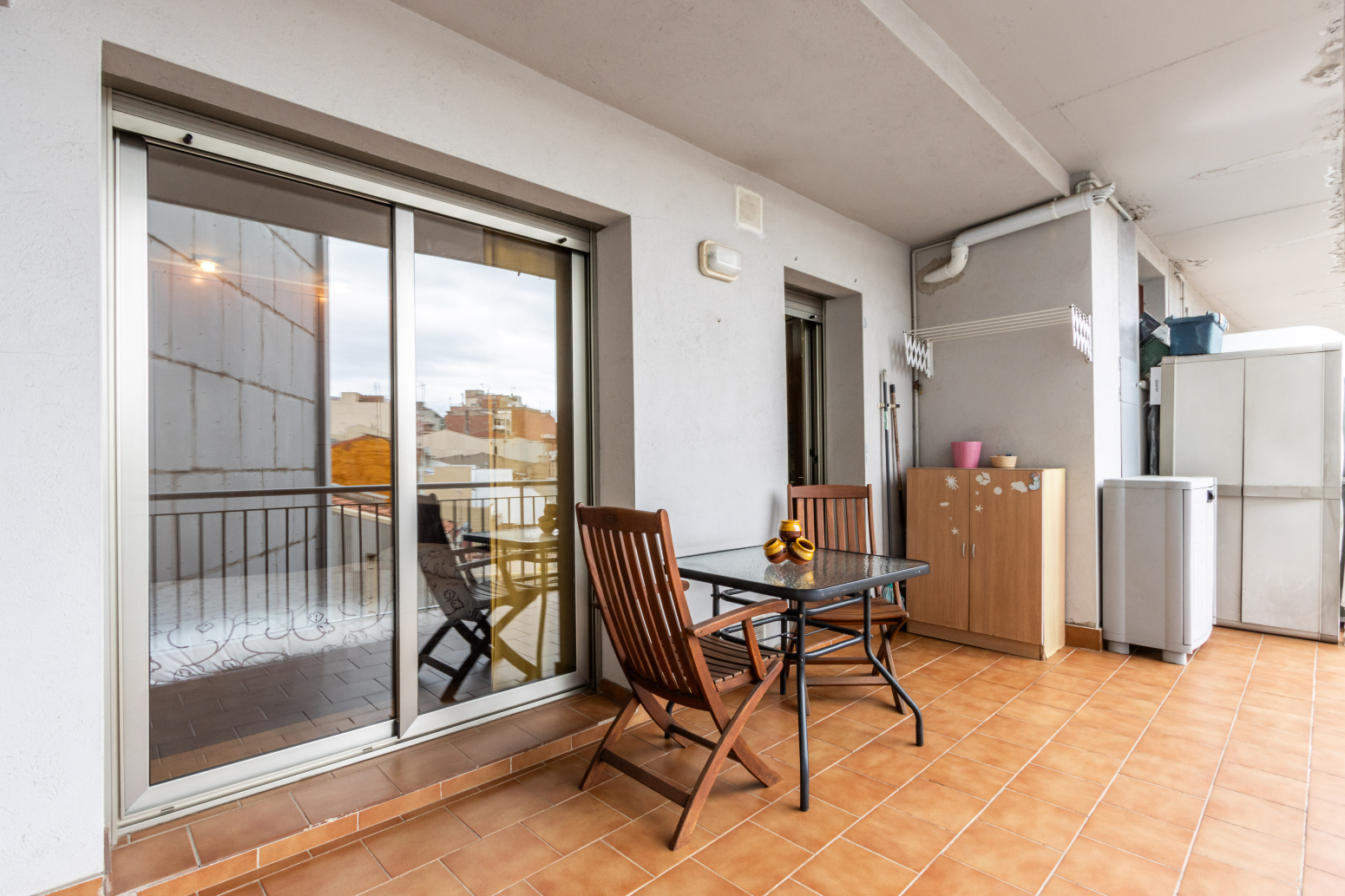 Un dels grans atractius d’aquesta propietat és la seva terrassa privada, un autèntic oasis urbà on gaudir de esmorzars al sol, tardes tranquil·les o sopars a l’aire lliure amb vistes a la ciutat. Un racó perfecte per desconnectar sense sortir de casa.