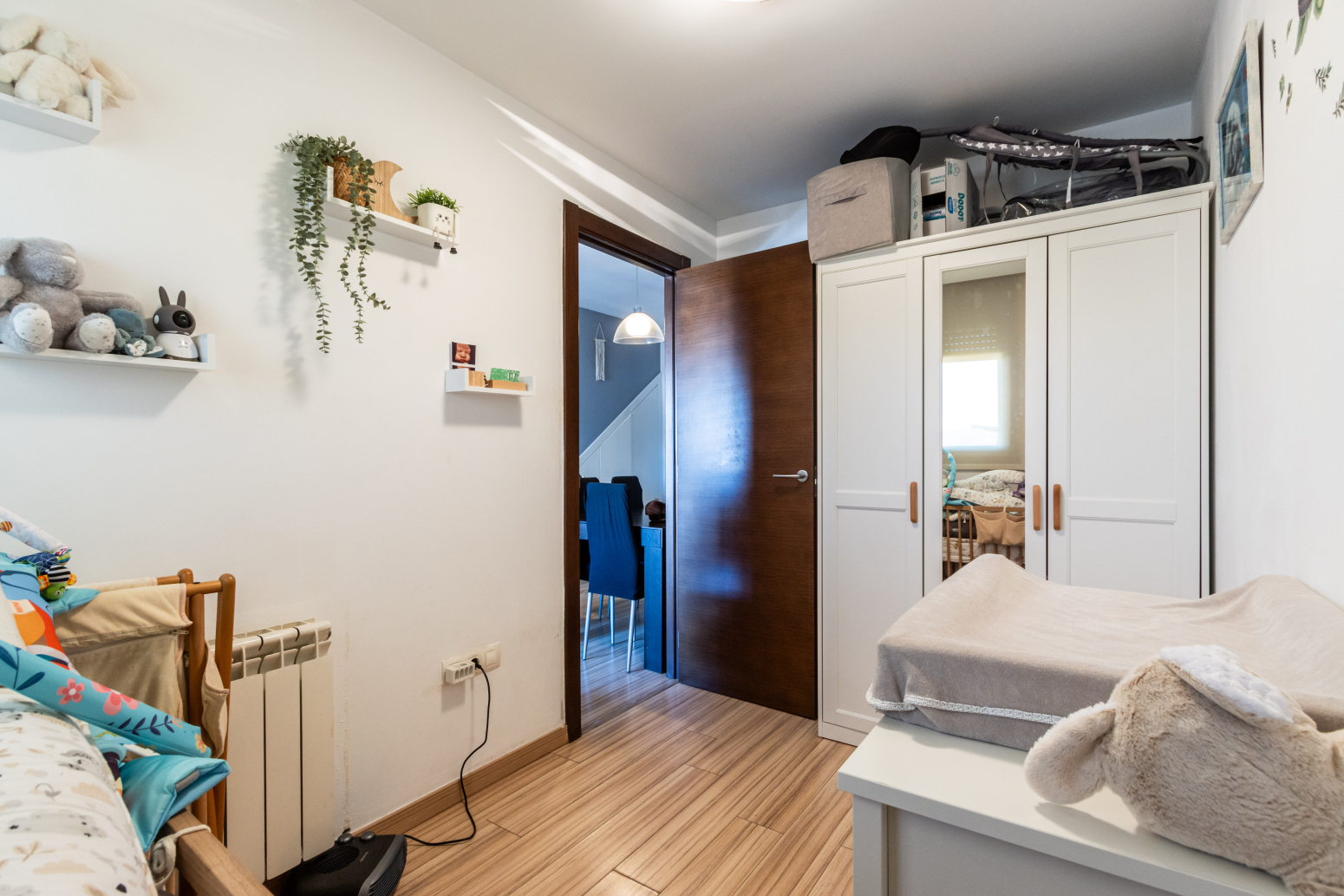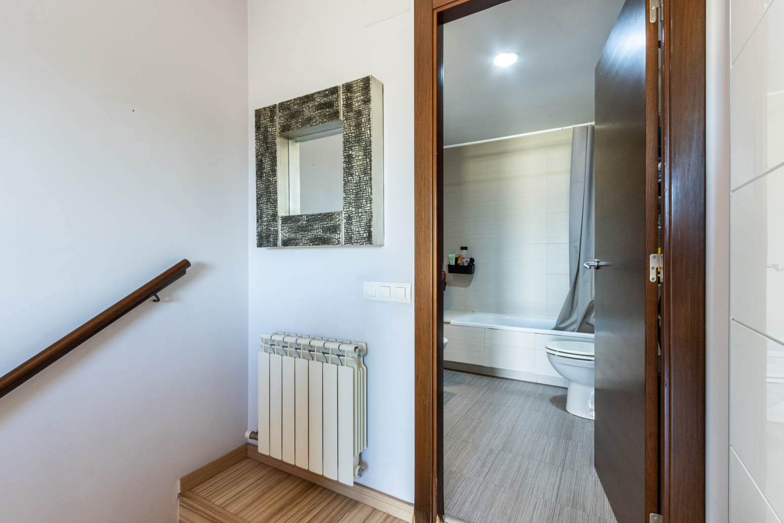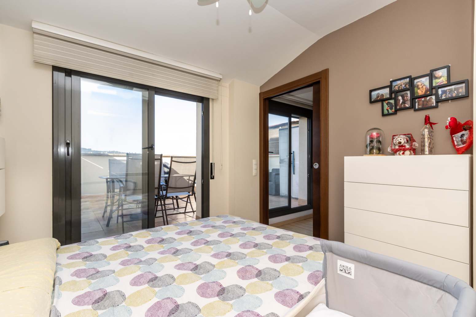 En la primera planta es troba la segona habitació, perfecta com a dormitori principal, un bany complet i l’accés a una espectacular terrassa de 23 m² amb impressionants vistes obertes al parc. Aquest espai privilegiat és ideal per gaudir de menjars a l’aire lliure, moments de relax o reunions amb amics, amb el valor afegit d’un entorn verd just davant de casa.