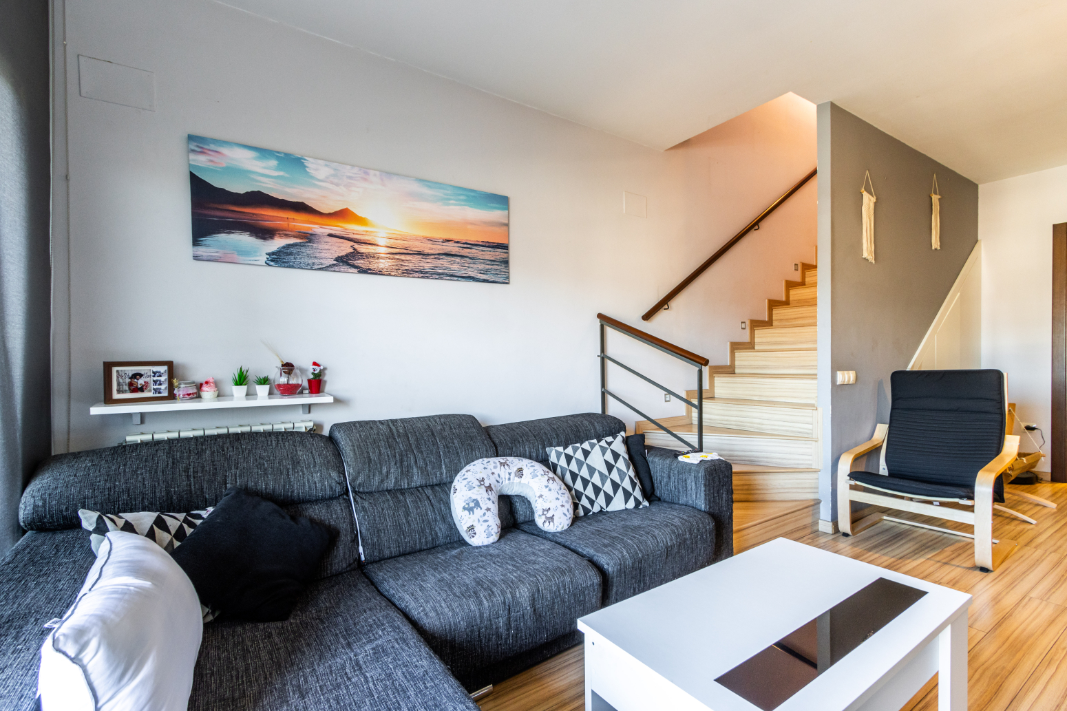 En la planta baixa trobem una lluminosa habitació, perfecta com a habitació infantil, despatx o habitació d’hostes, un pràctic lavabo de cortesia i un acollidor balcó que aporta llum natural i ventilació. La cuina és independent, còmoda i funcional, pensada per gaudir-la sense interferir en la resta d’espais.