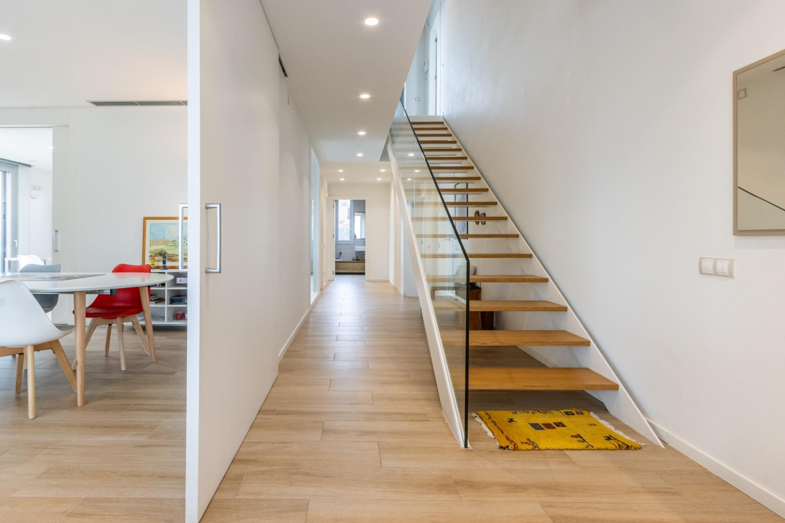 Des del rebedor, s’accedeix a la primera planta mitjançant una escala de disseny modern, que condueix a un ampli i lluminós distribuïdor. En aquesta planta es troben: