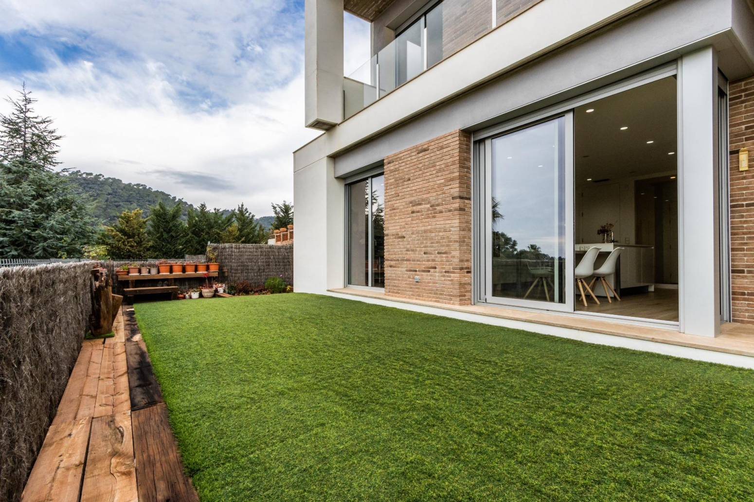El exterior de l’habitatge, accessible des de la planta principal, està totalment ajardinat i destaca per: