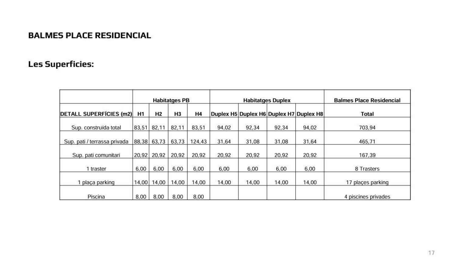 Les plantes baixes ofereixen jardí i piscina privada, mentre que els dúplex compten amb una espectacular terrassa de més de 30 m² a la planta superior.