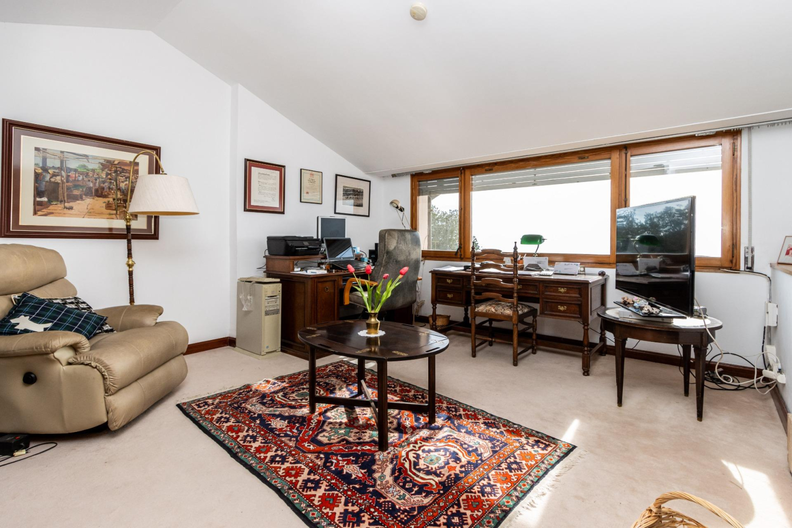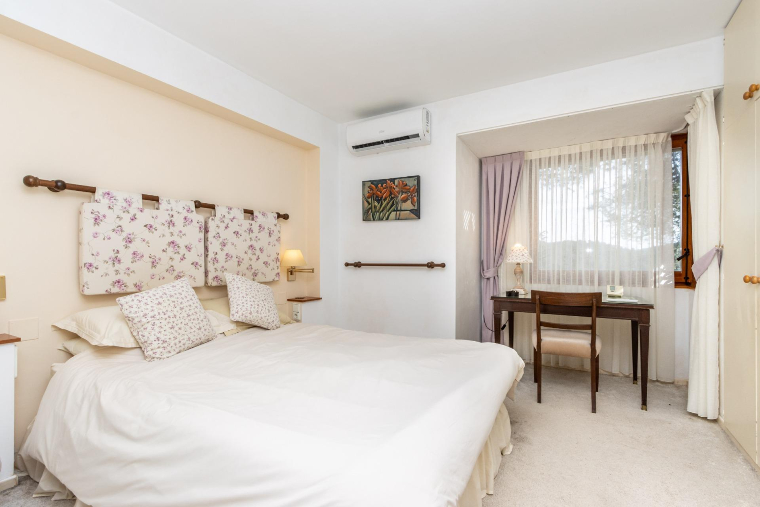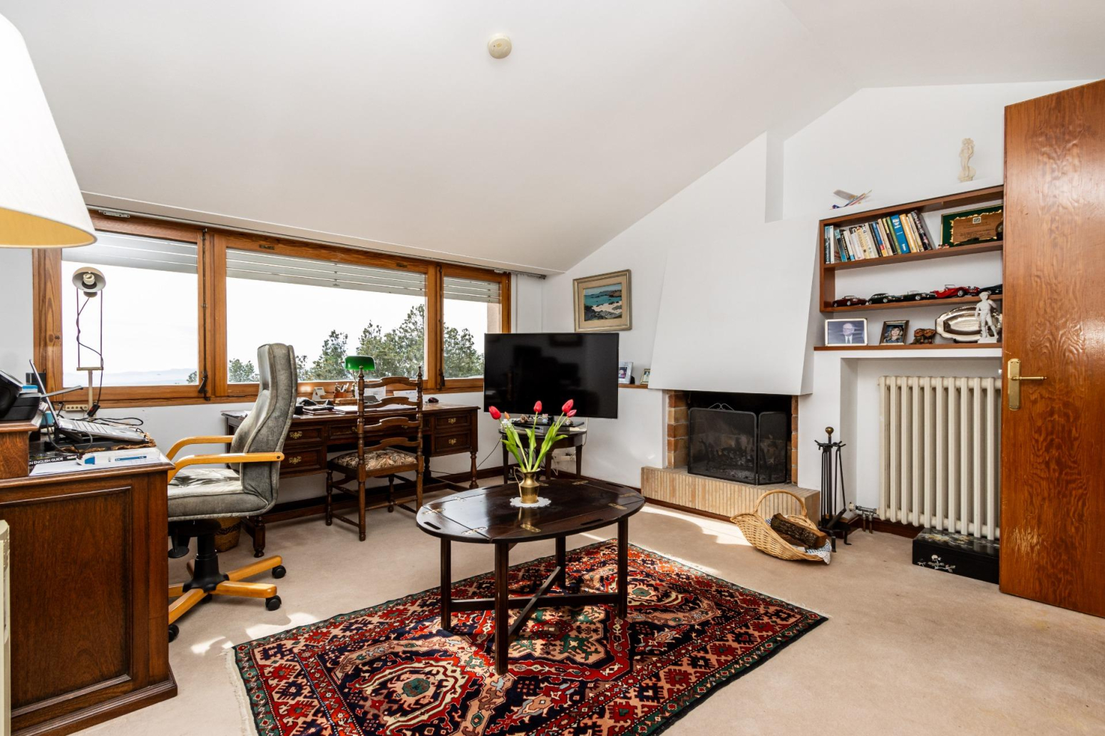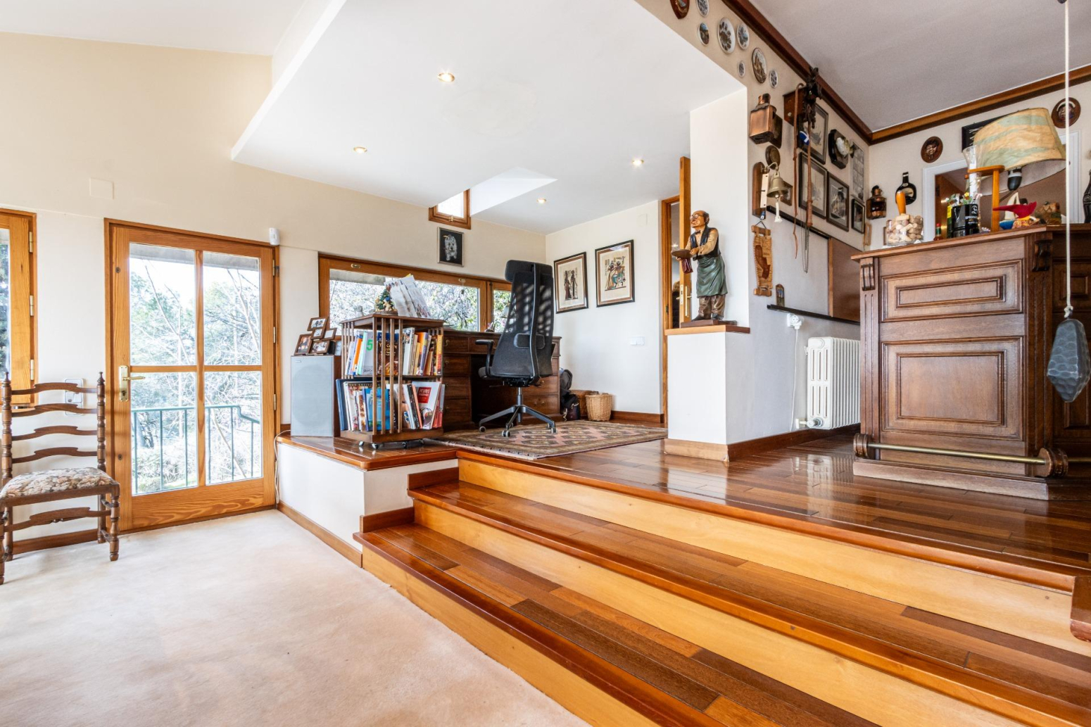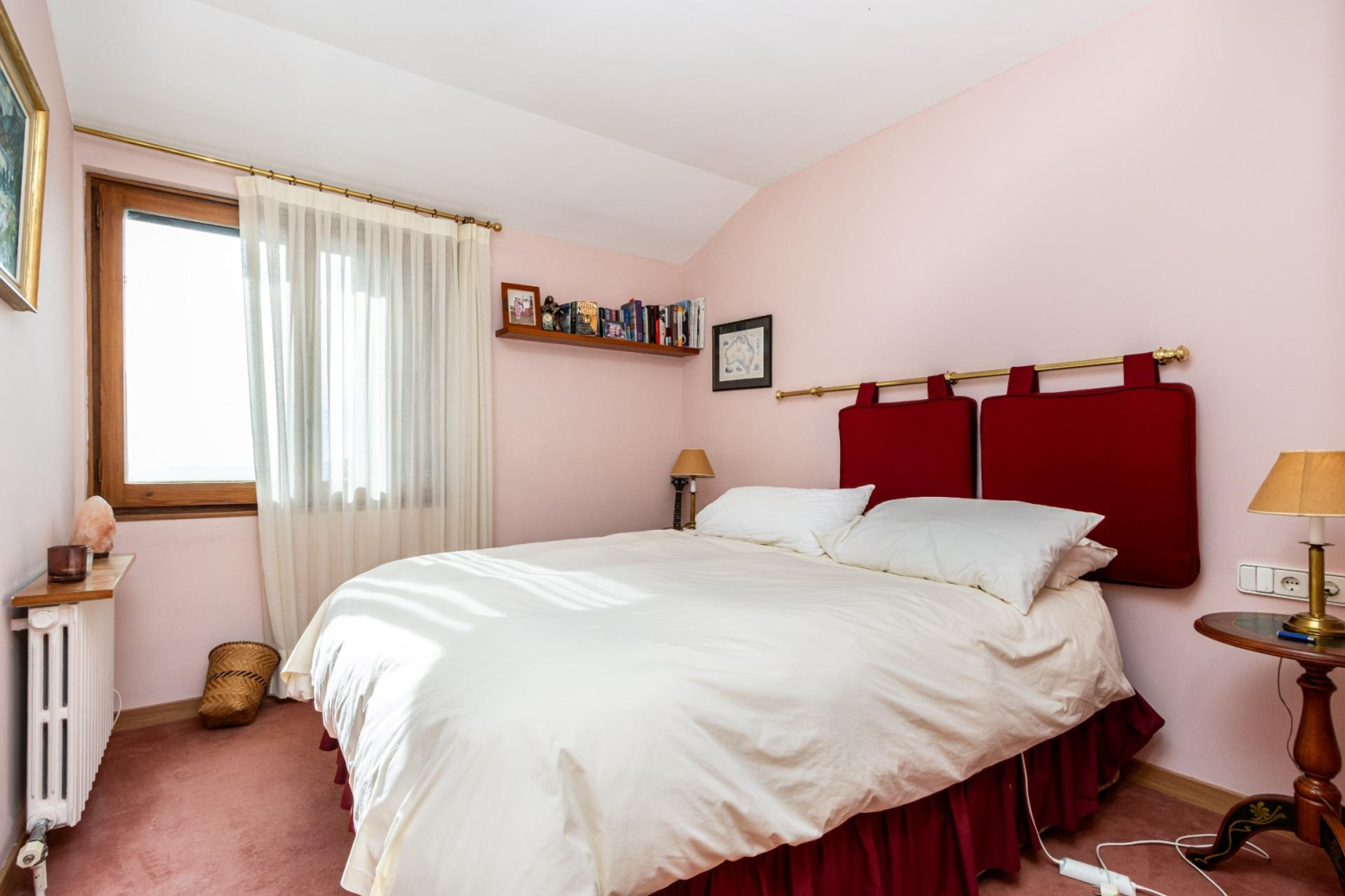 A l’esquerra del rebedor, hi ha un distribuïdor que dóna accés a quatre habitacions dobles, una d’elles en suite, i un bany complet. En pujar les escales, accedim a un acollidor estudi abuhardillat amb xemeneia-llar, que gaudeix de les fantàstiques vistes des de la zona més elevada d’aquesta vivenda única.