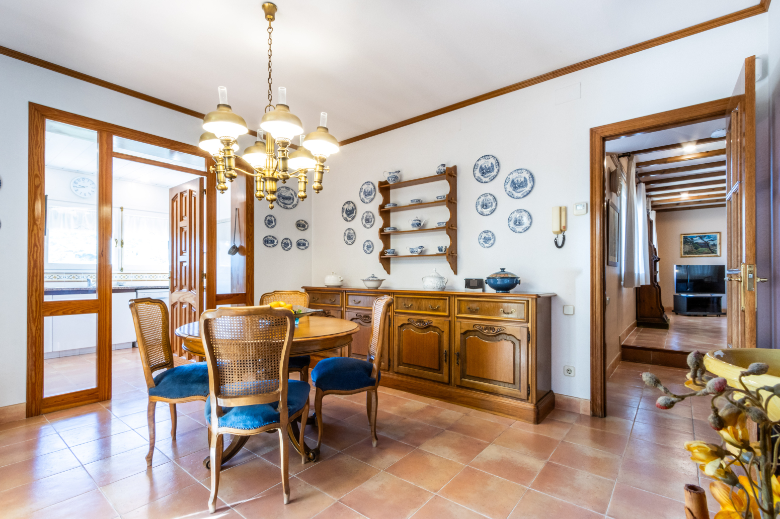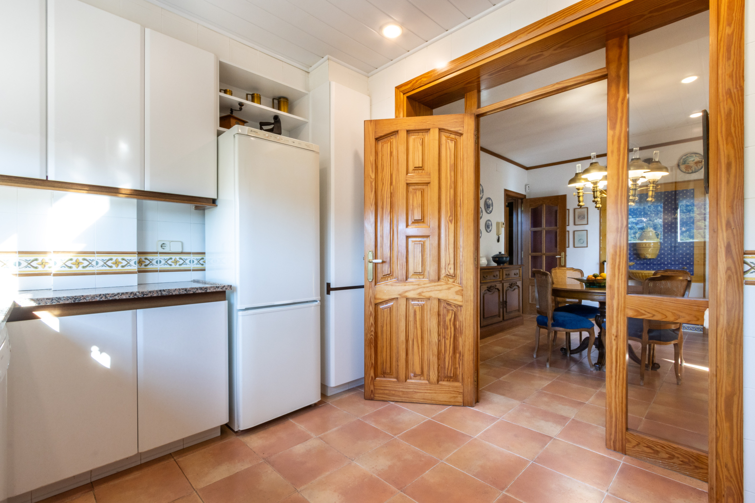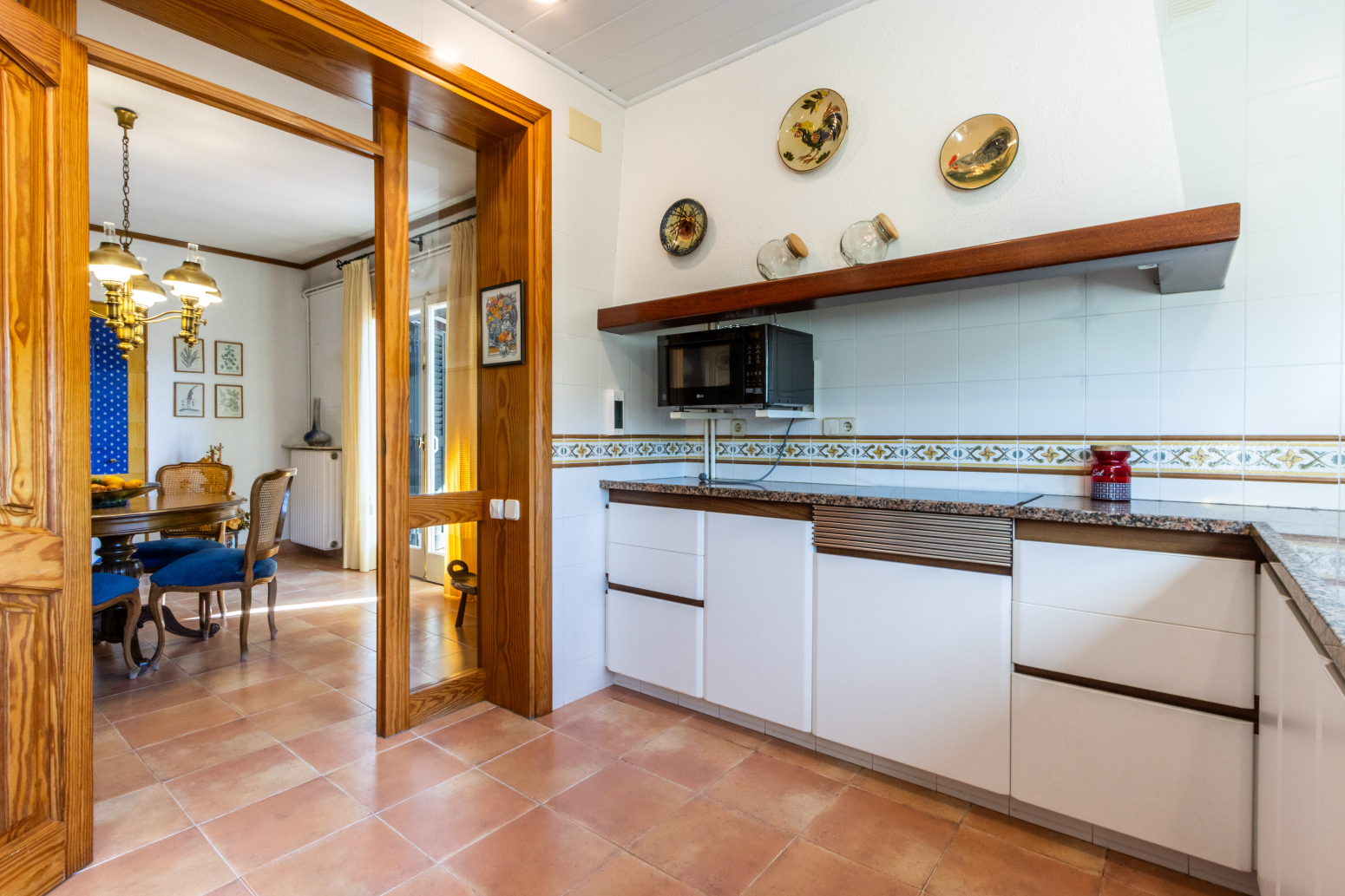La cuina, pràctica i ben aprofitada, és aquell lloc on neixen olors que es converteixen en records: el cafè de primera hora, una recepta especial en diumenge, berenars improvisats.