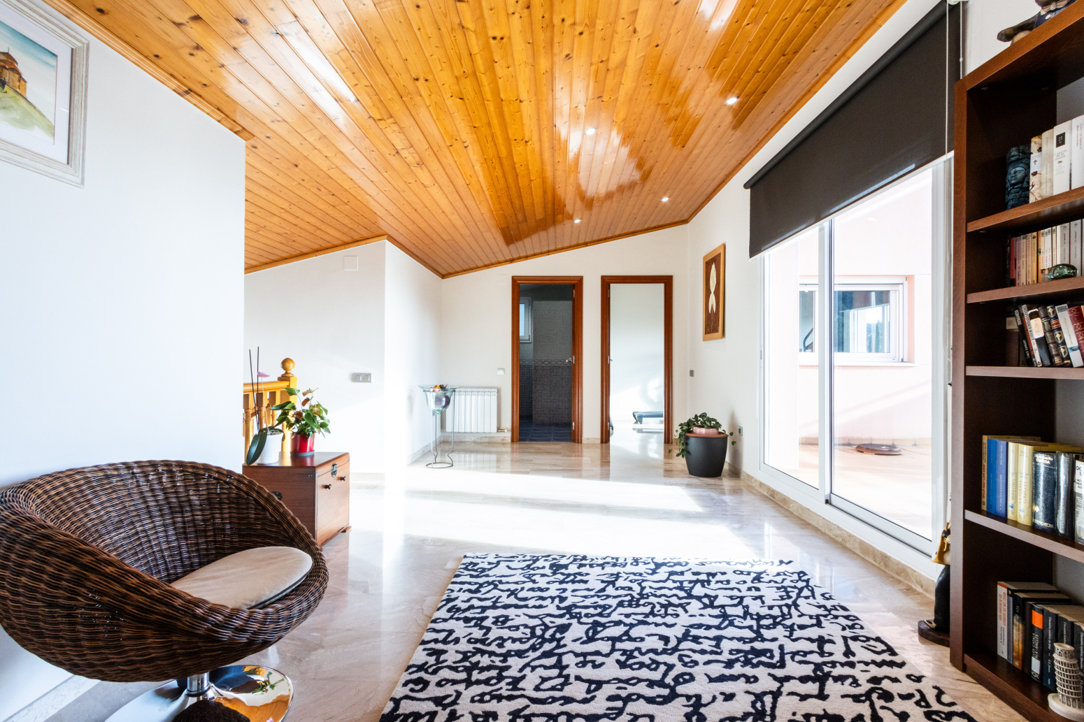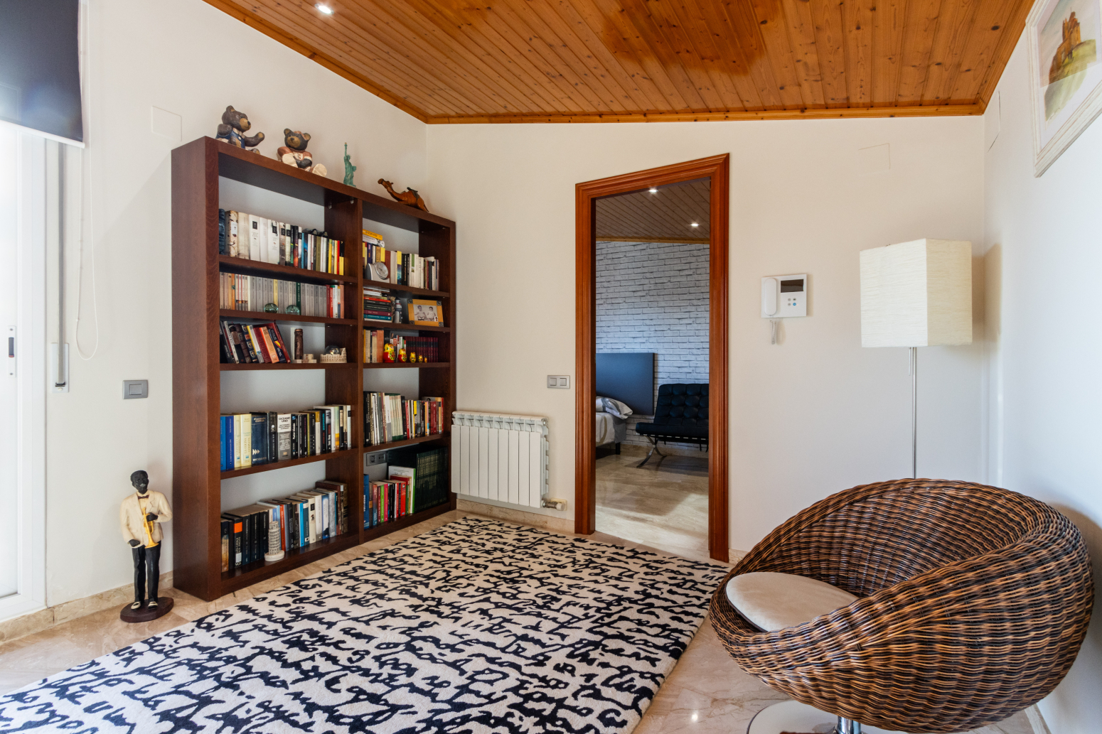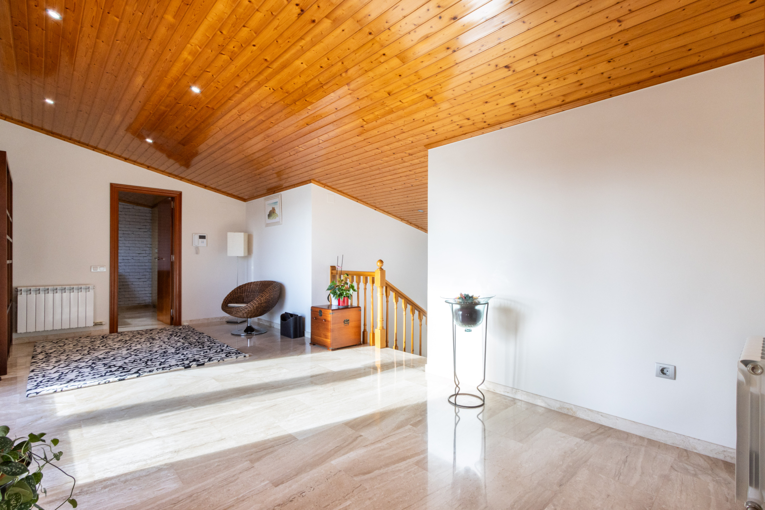 Accedim a la planta superior pujant per una àmplia escalinata que desemboca en una espaiosa zona comuna que dóna entrada a diverses estances. Aquesta zona comuna, que pot habilitar-se com a estudi, compta amb: