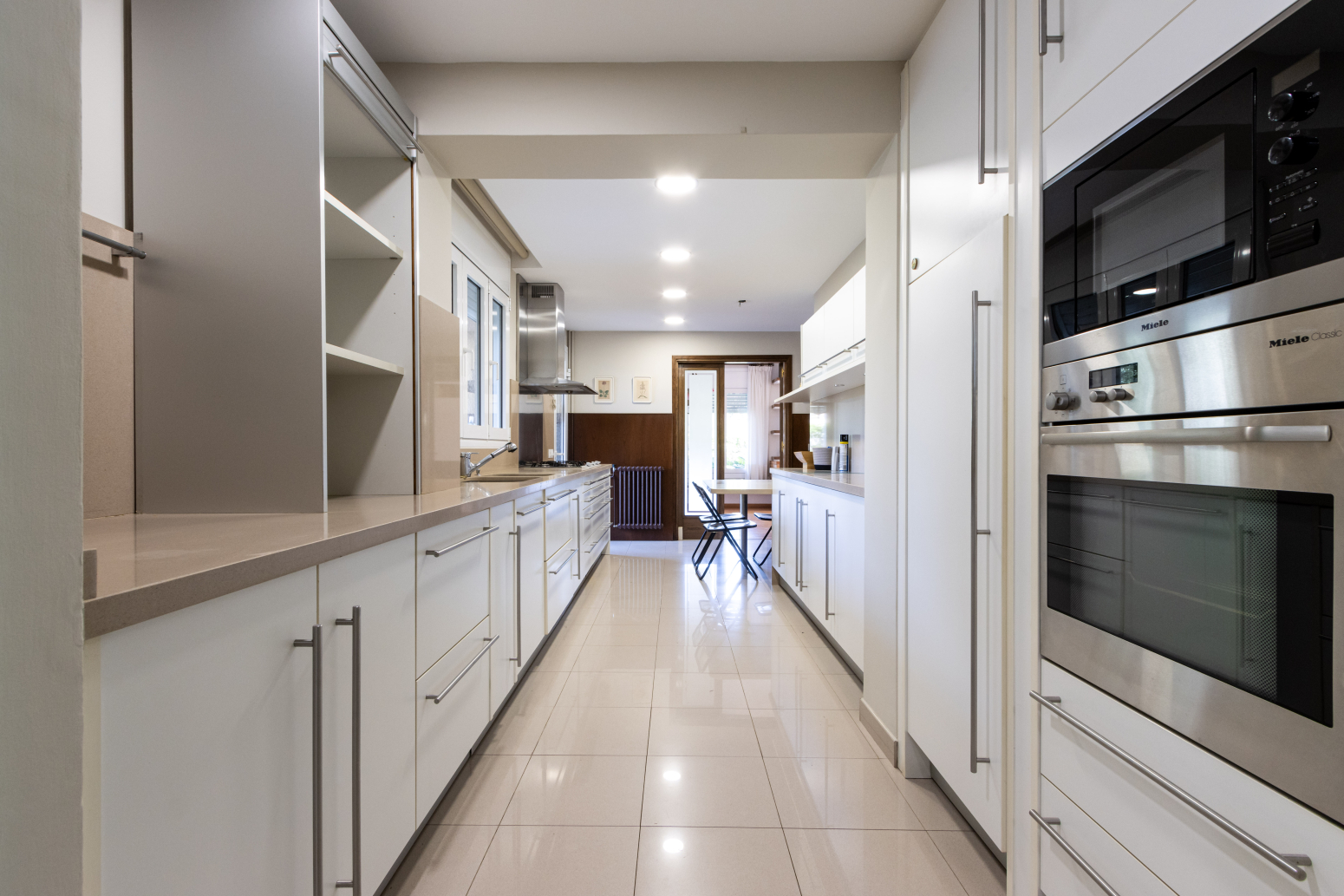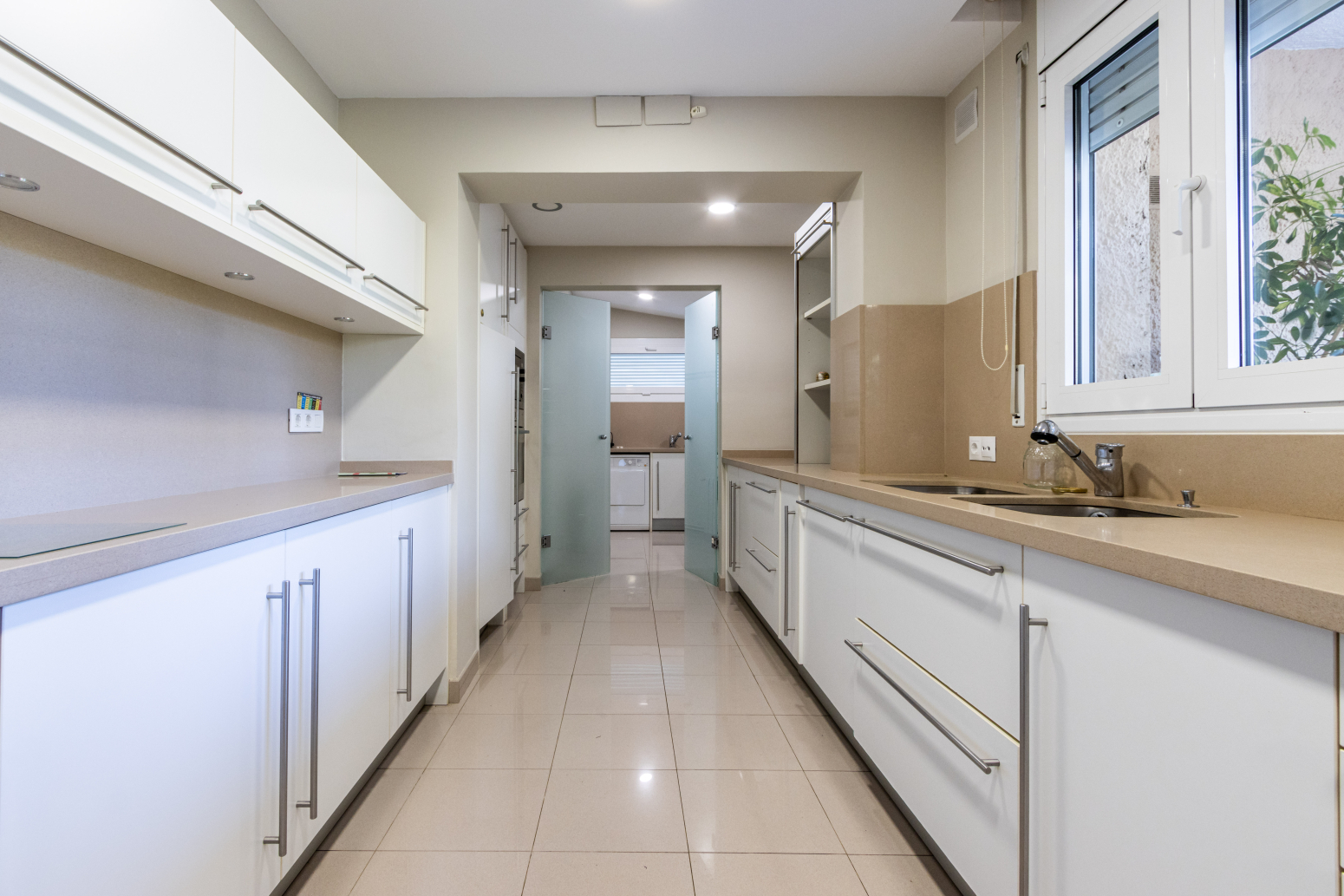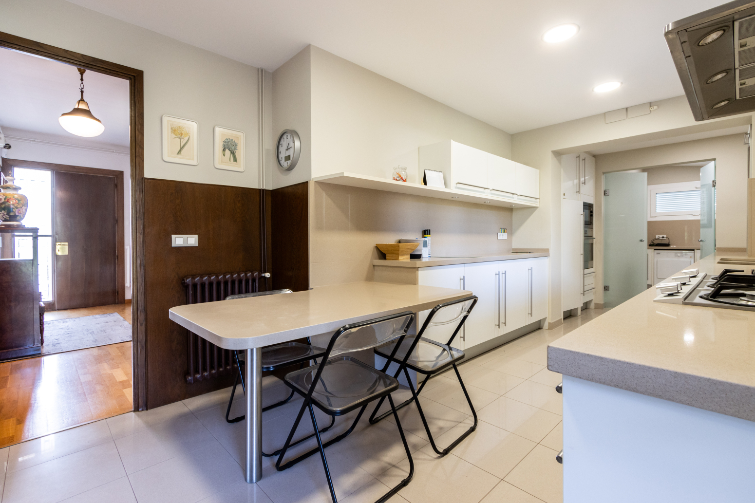 La molt àmplia cuina-office està equipada amb mobles de la marca Santos i electrodomèstics integrats d’alta gamma. Cada racó d’aquest habitatge ha estat dissenyat i cuidat fins al més mínim detall, creant un espai acollidor i funcional alhora.