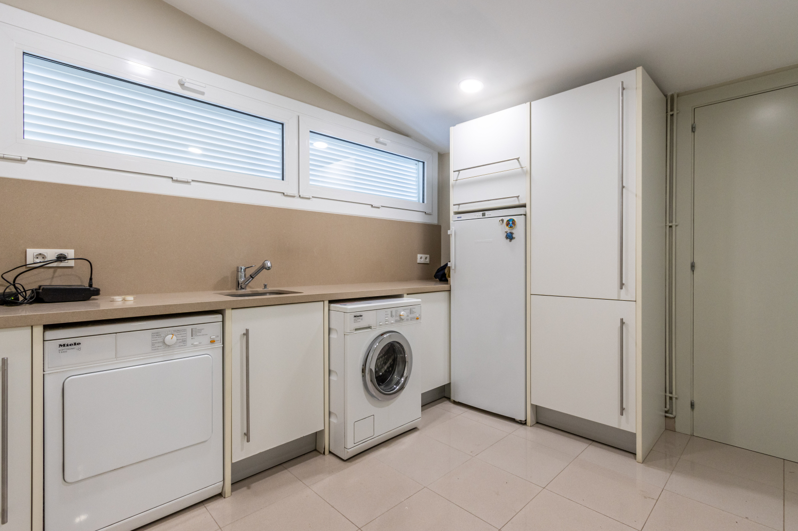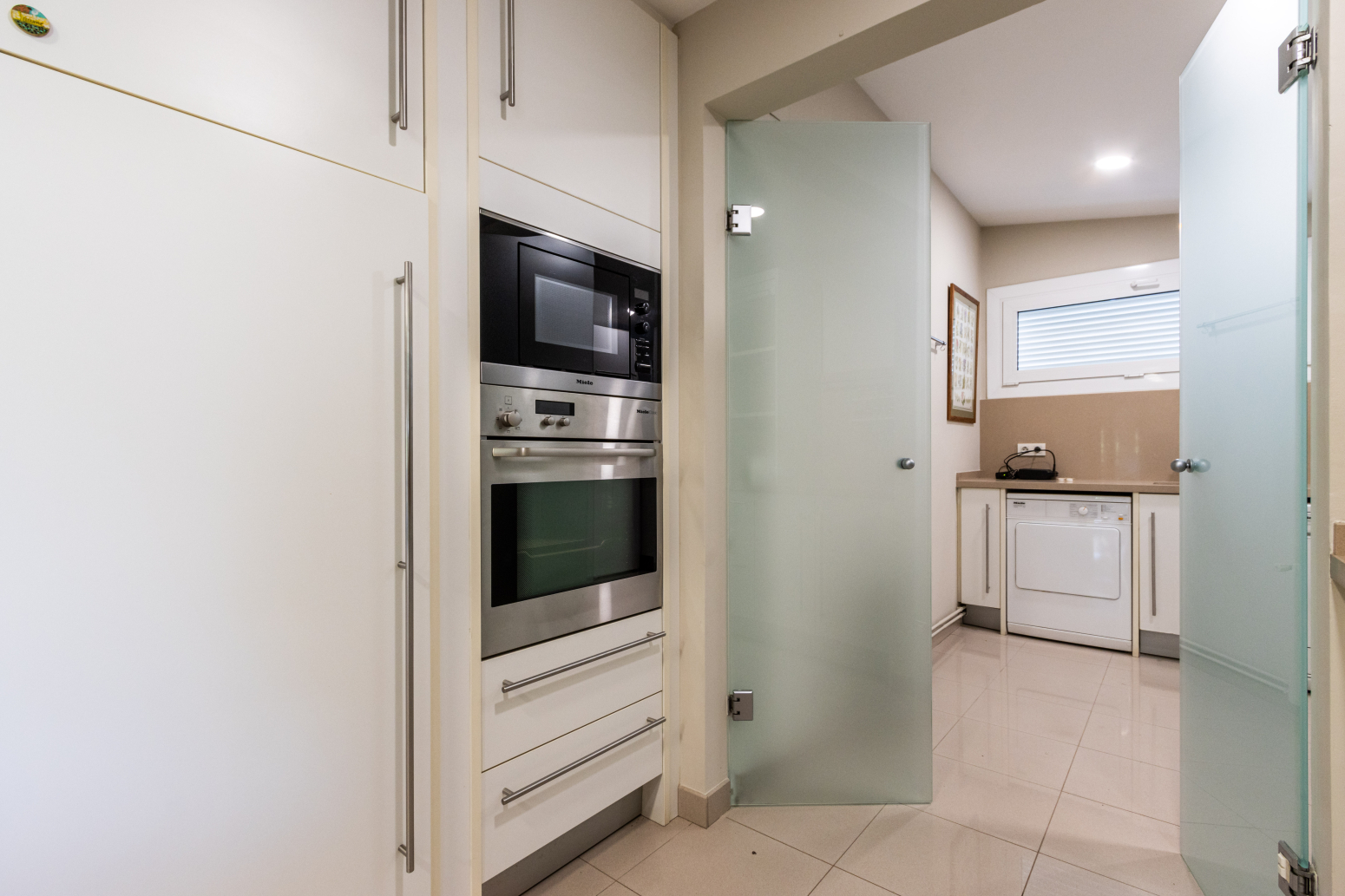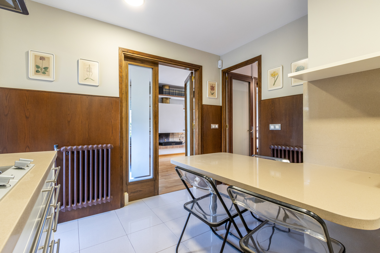 La molt àmplia cuina-office està equipada amb mobles de la marca Santos i electrodomèstics integrats d’alta gamma. Cada racó d’aquest habitatge ha estat dissenyat i cuidat fins al més mínim detall, creant un espai acollidor i funcional alhora.