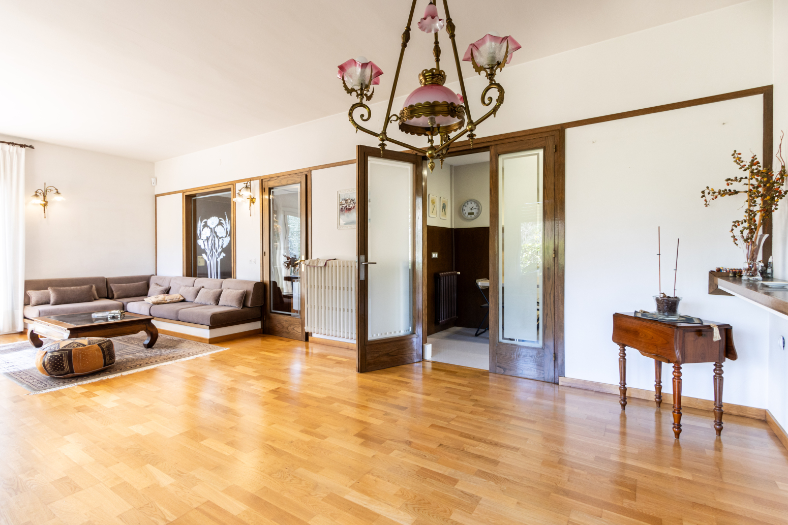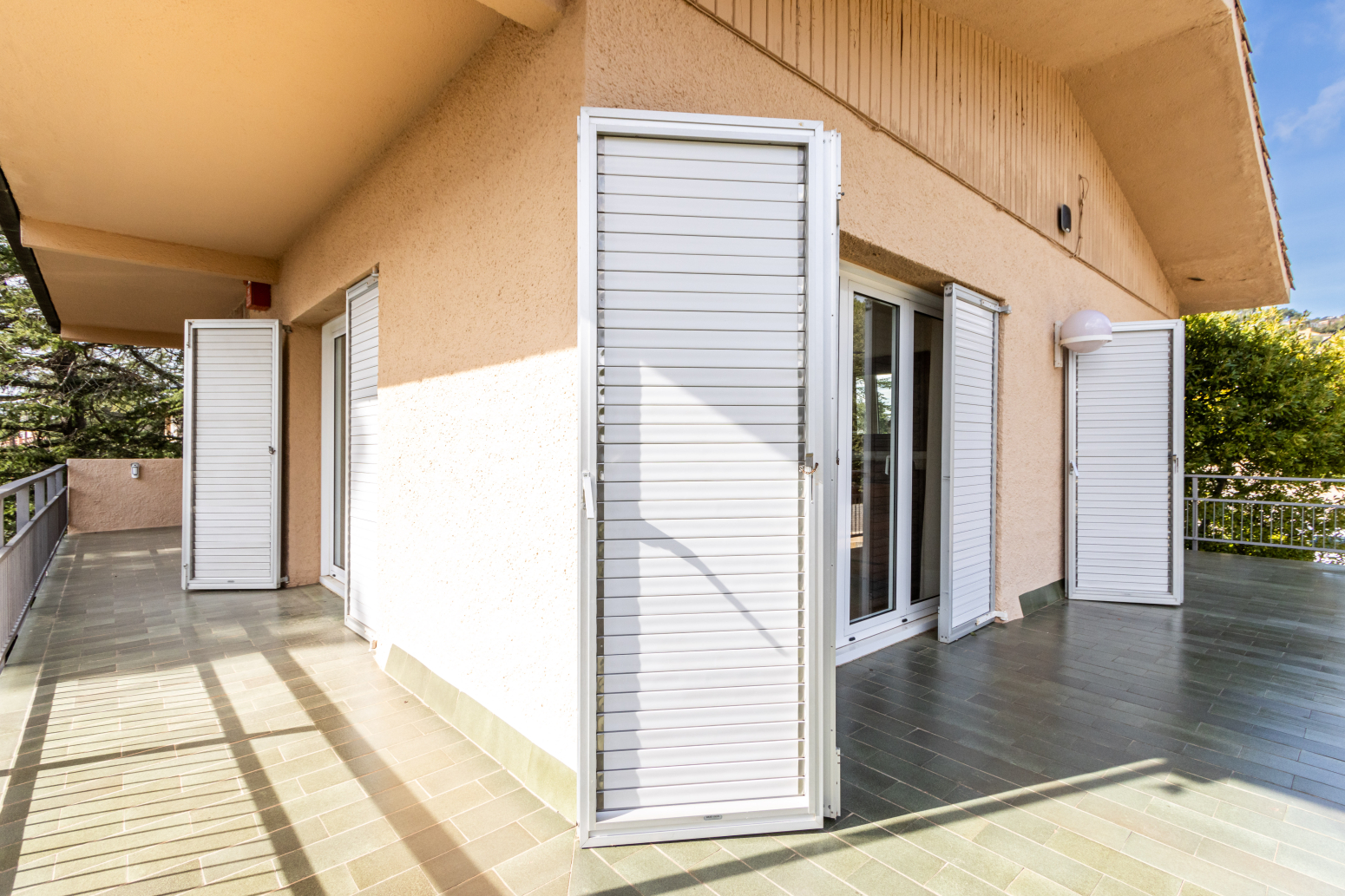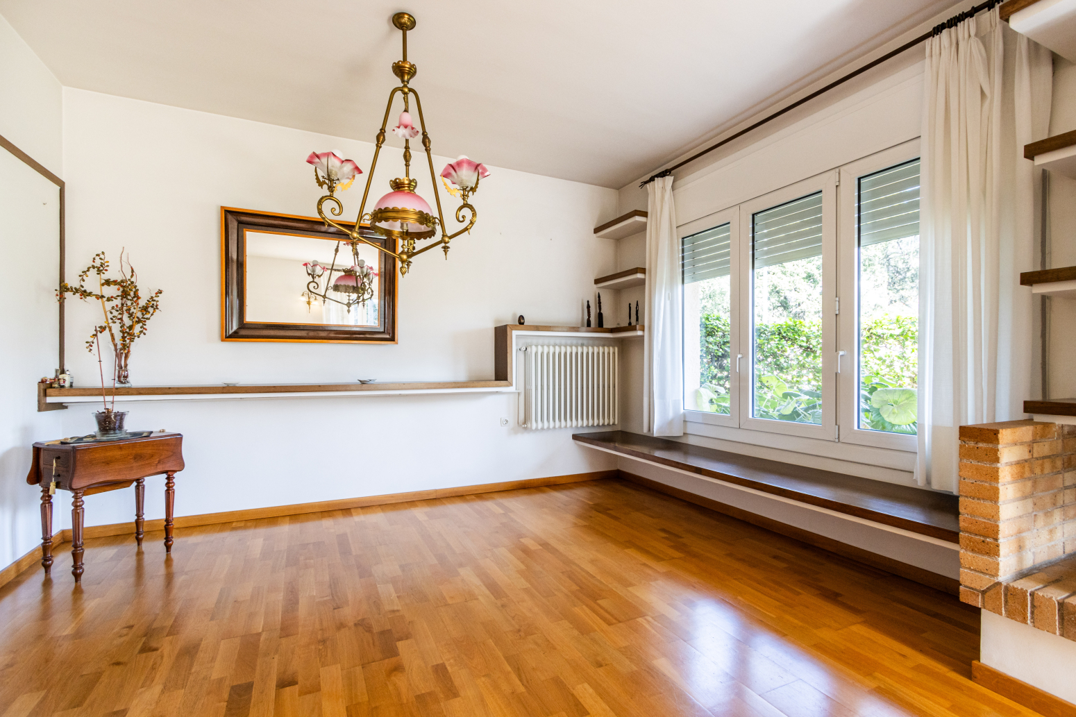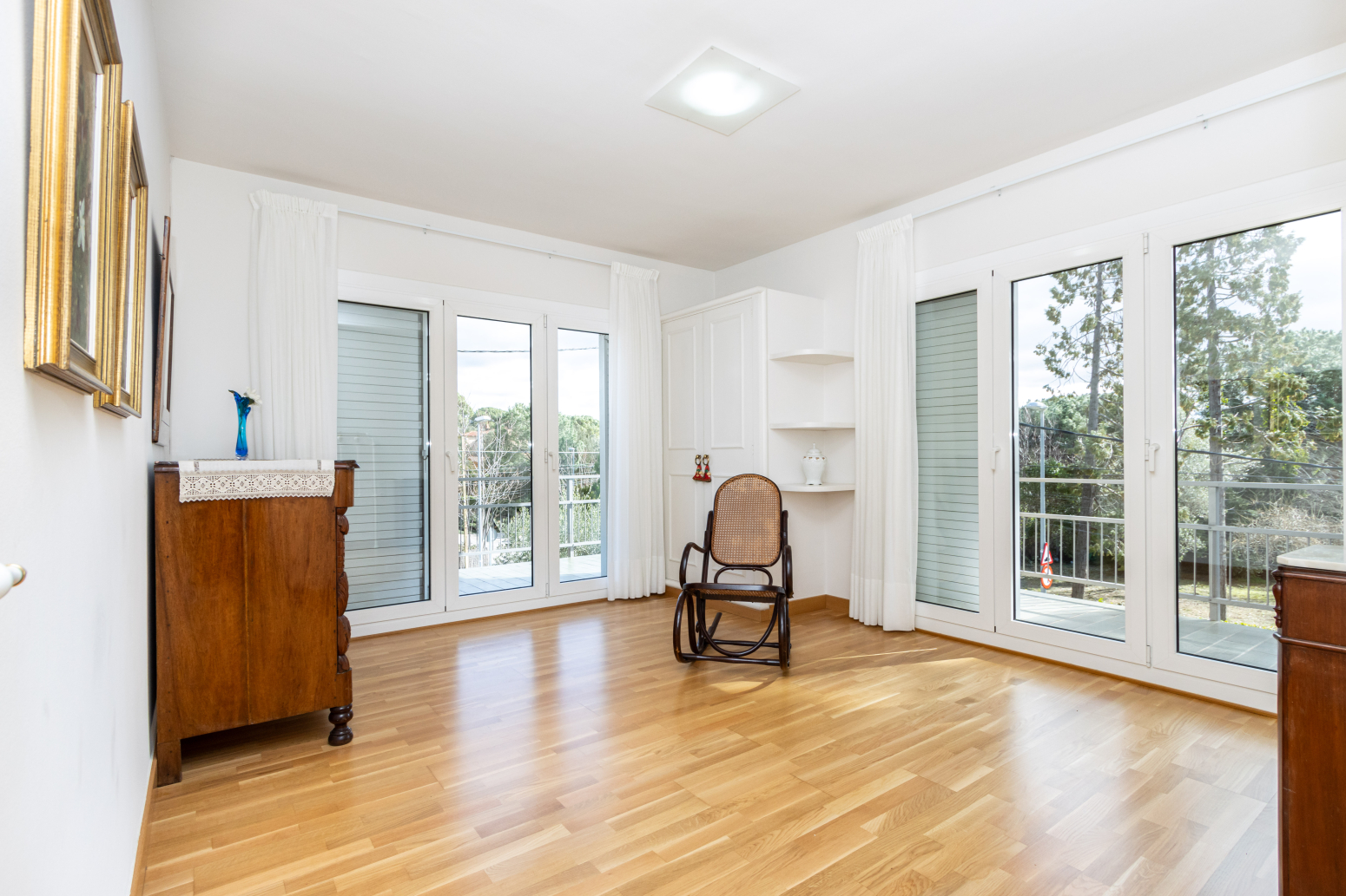 Destaca la qualitat dels tancaments exteriors d’alumini amb ruptura de pont tèrmic de la prestigiosa marca Corona, que proporcionen un perfecte aïllament tèrmic i acústic. La fusteria interior és de roure envernissat i els sòls són de parquet de fusta natural a tota la casa.