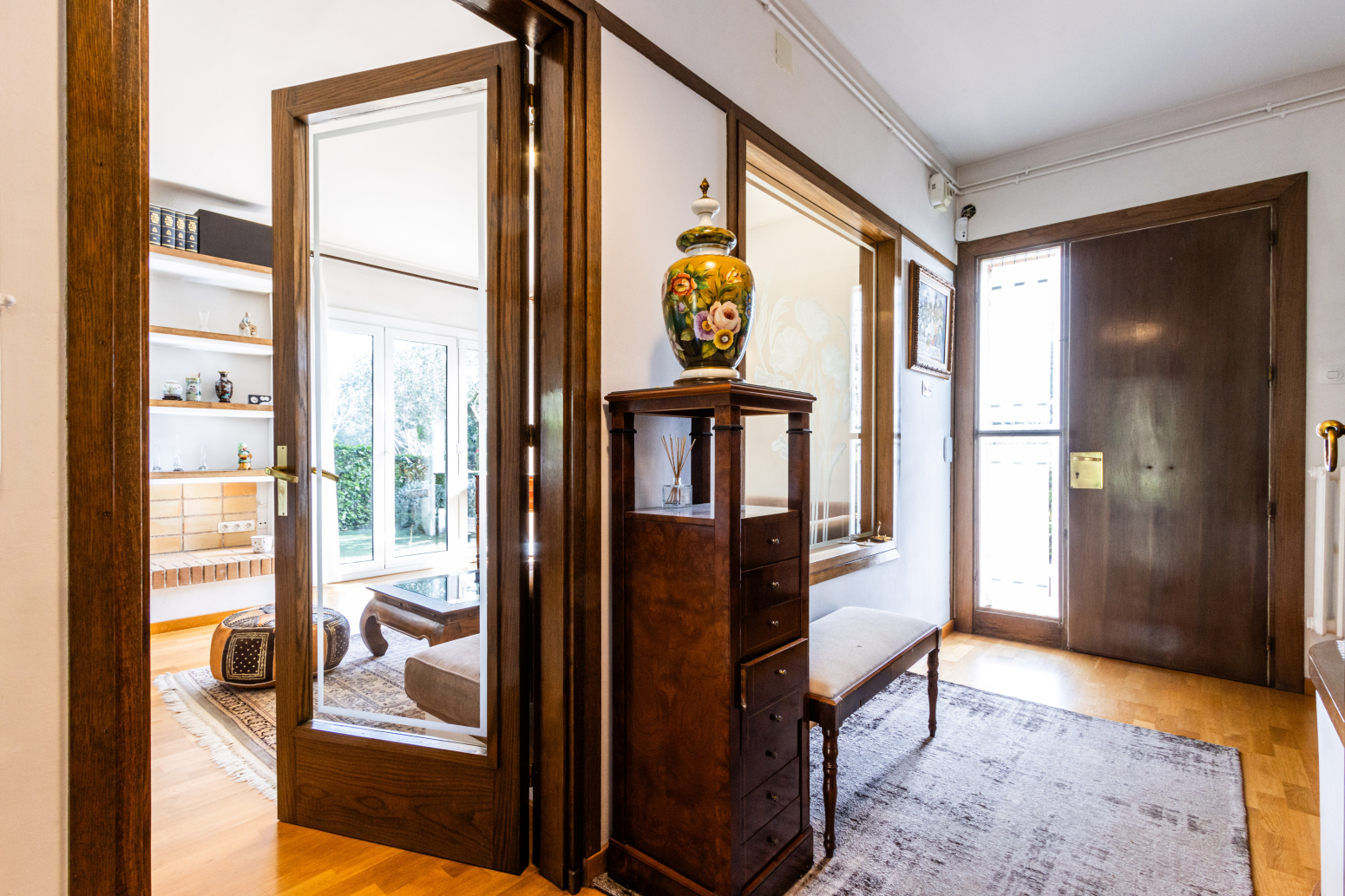 Se s’accedeix a la casa per la planta baixa a través d’un rebedor, des del qual s’accedeix a: