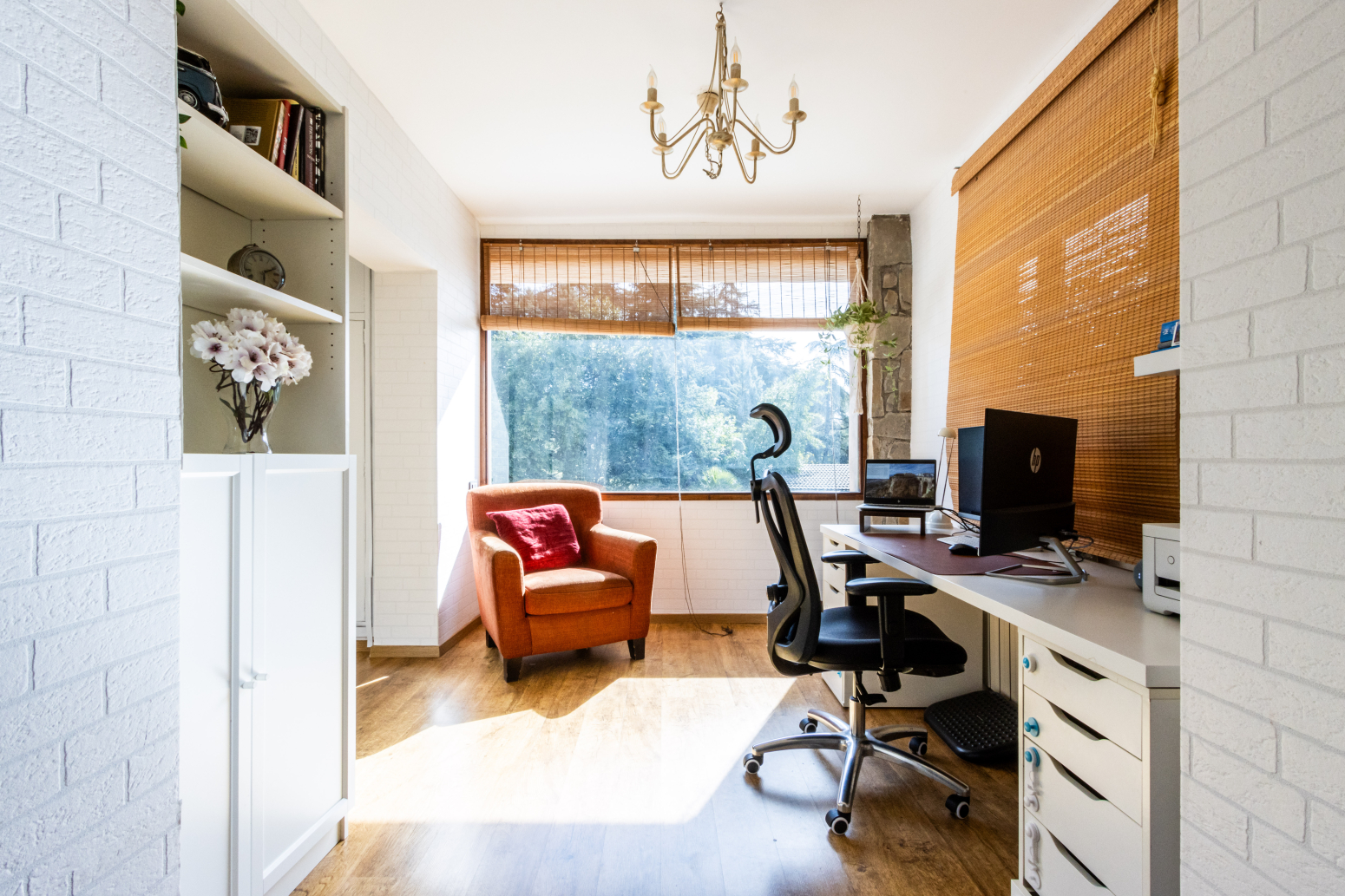 - Zona d’estudi amb vistes a la piscina