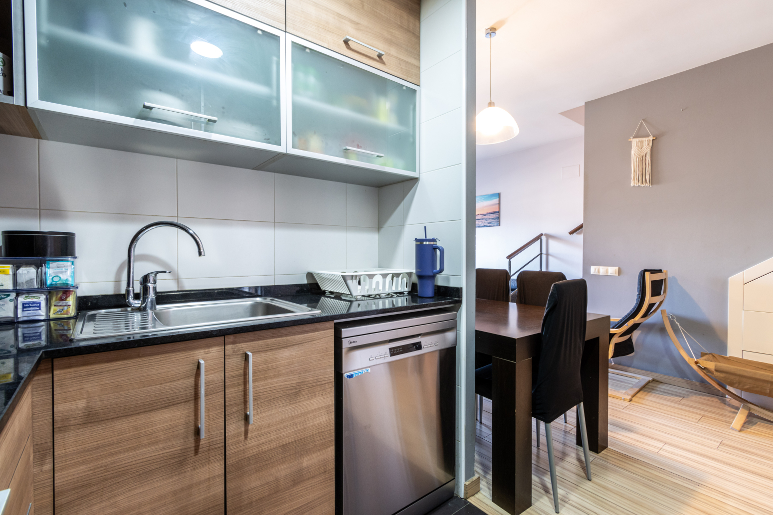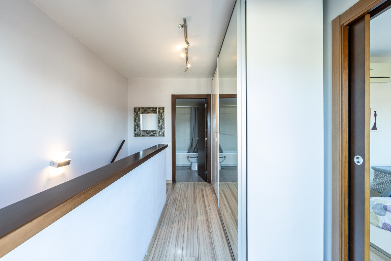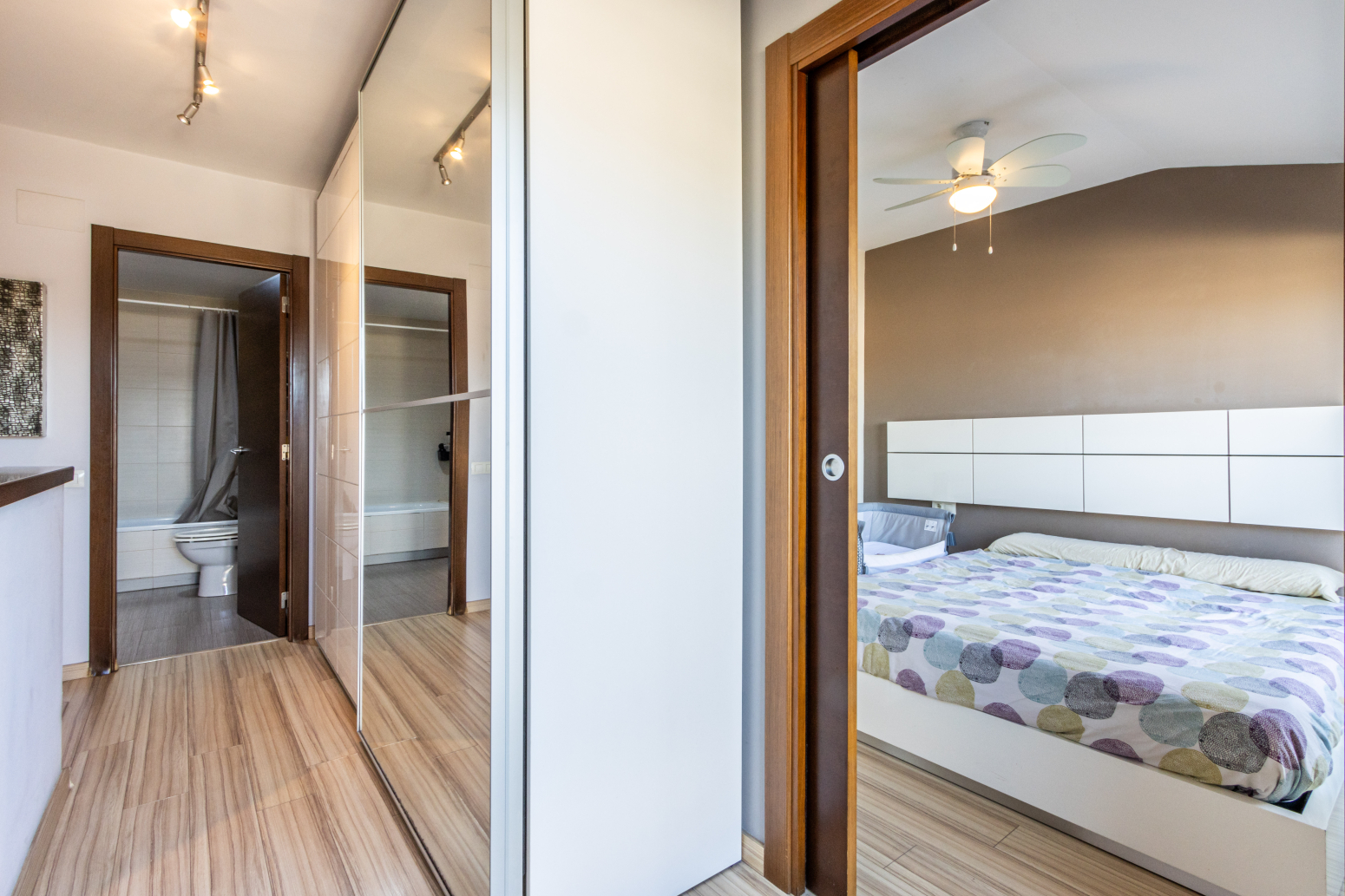 En la planta baixa trobem una lluminosa habitació, perfecta com a habitació infantil, despatx o habitació de convidats, un pràctic lavabo de cortesia i un acollidor balcó que aporta llum natural i ventilació. La cuina és independent, còmoda i funcional, pensada per a gaudir-la sense interferir en la resta d espais. En la primera planta se situa la segona habitació, perfecta com a dormitori principal, un bany complet i l accés a una espectacular terrassa de 23 m²amb impressionants vistes obertes al parc.